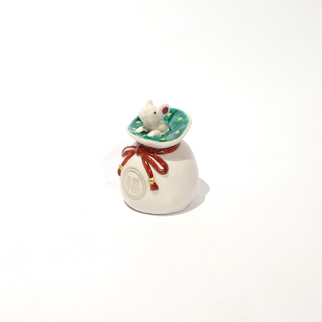 宝袋からひょっこり顔を出した愛らしい「子」が幸せを呼びこんでくれそうです。 【略歴】 石川県小松市八幡生まれ 石川県立九谷焼技術研修所 本科・研究科 卒 九谷焼伝統工芸士(成形部門) 父 直樹に師事 陶磁彫刻の技法を学びながら、永く可愛がっていただけるものを目標に制作しています。 【サイズ】 約 最大幅 6cm x 高さ 8.5cm 【素材・技法】 九谷磁土・型起こし・色絵 等 【外箱】 化粧箱(*ギフト包装は下記リンクをご参照の上、オプションよりお選びください。) https://ginkana.theshop.jp/items/26841449 【お買い上げの前に必ずお読みください】 *ひとつひとつ手づくりのお品物になります。そのためサイズ、カタチ、色に個性が生じます。出会いのものとしてお楽しみください。 ※ブラウザ環境や撮影時の光の加減により色合いや濃淡が実物と違って見える場合があることを予めご了承下さい。また、色味、サイズには多少個体差がございます。 【領収書について】 BASEでは請求書や領収書の発行を行っておりません。領収書の発行をご希望のお客様は備考欄にてお知らせください。作品に同梱させていただきます。