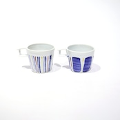 取っ手がユニークなカップです。水玉やストライプ、ポップなデザインが食卓を彩ります。スープカップやデザートカップにもどうぞ。
