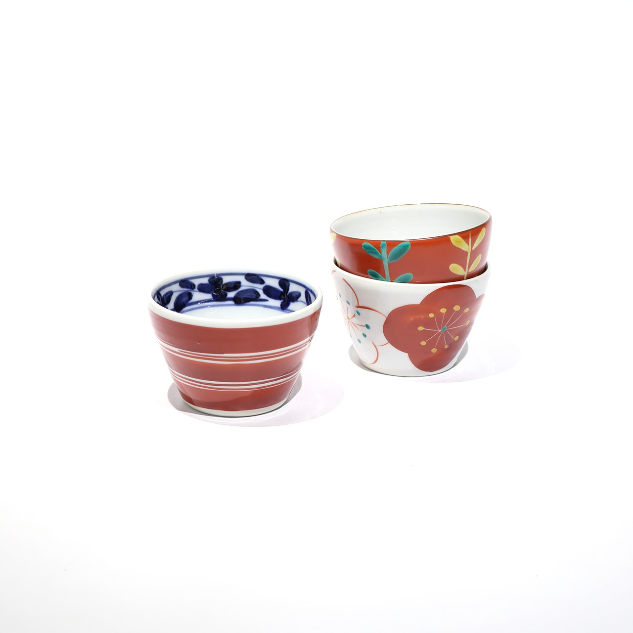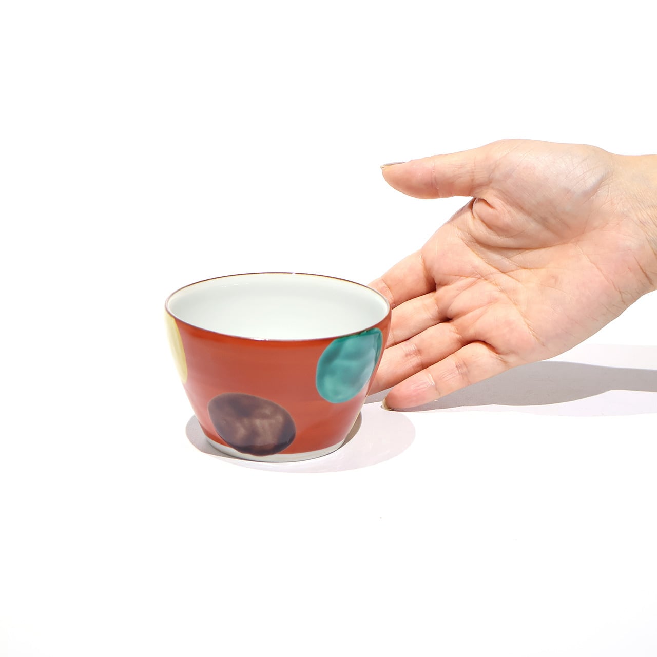 色鮮やかな線、絵柄が心弾む蕎麦猪口です。