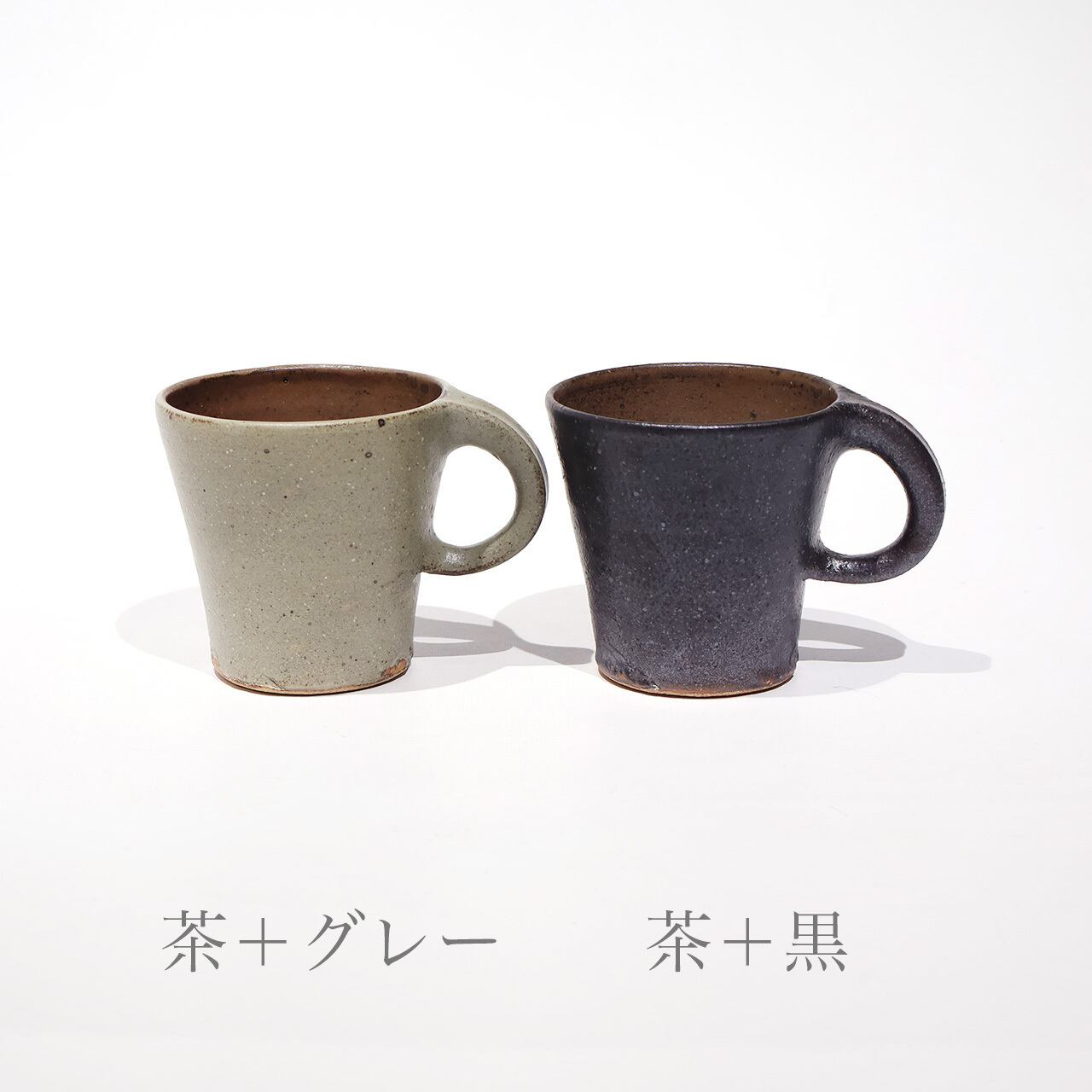 岩﨑晴彦 珈琲カップ 茶+グレー / 茶+黒