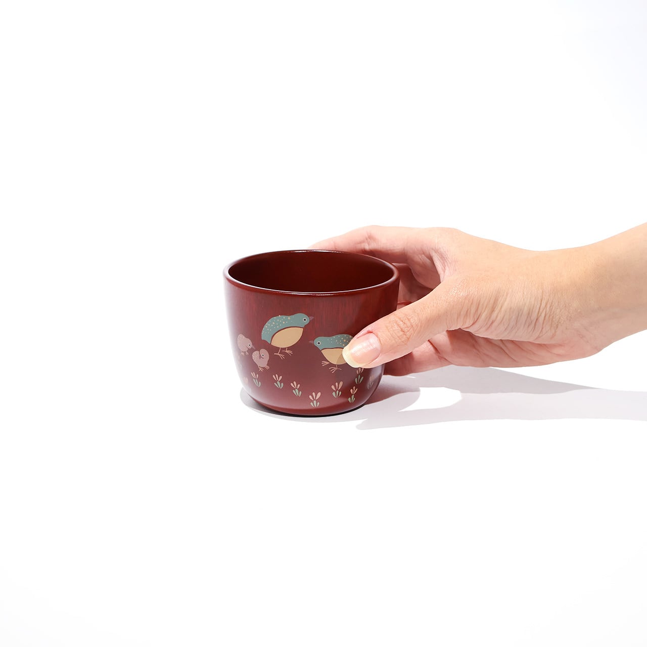 幼児が両手で持つようなサイズ感です。大人用としてはそば猪口にもお使いいただけそうです。こども椀とお揃いでいかがでしょうか。
