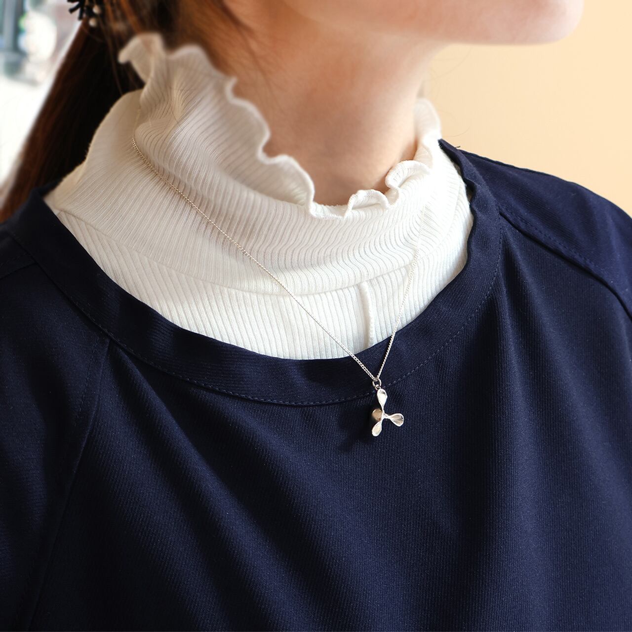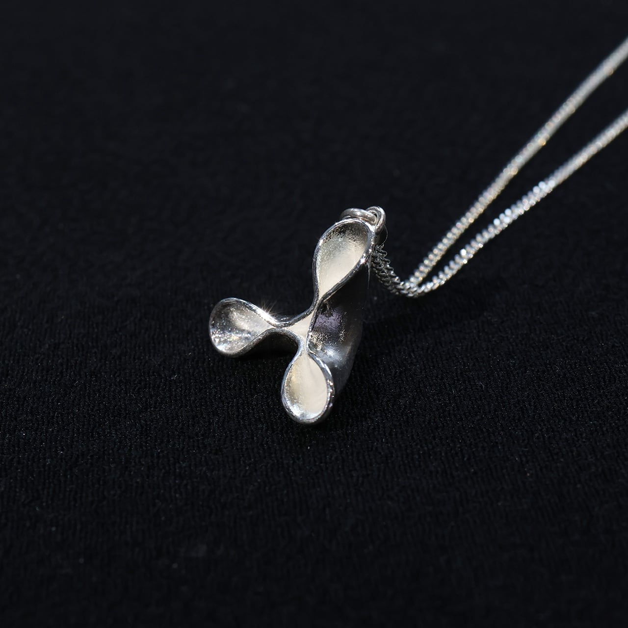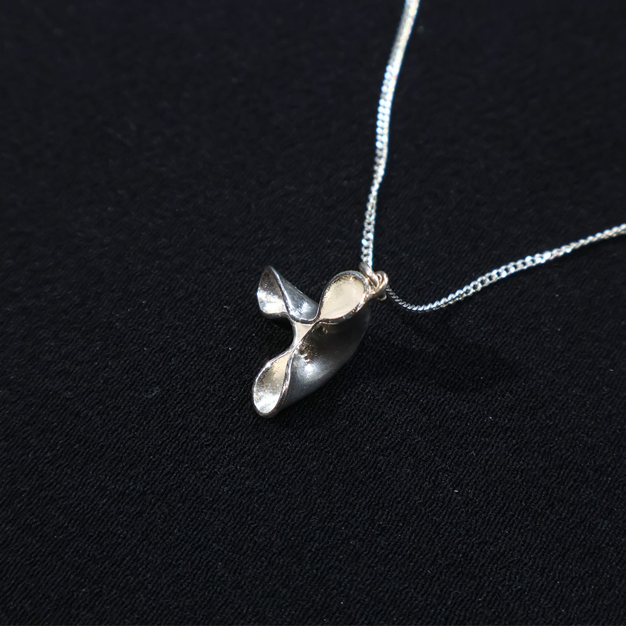 金沢の伝統的な縁起物のお菓子、辻占をかたどったトップが揺らぐネックレスです。本当にお菓子を作るようにひとつぶひとつぶ溶かしたり磨いたりの細かな手作業で作られています。