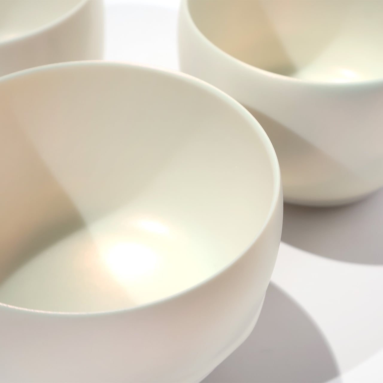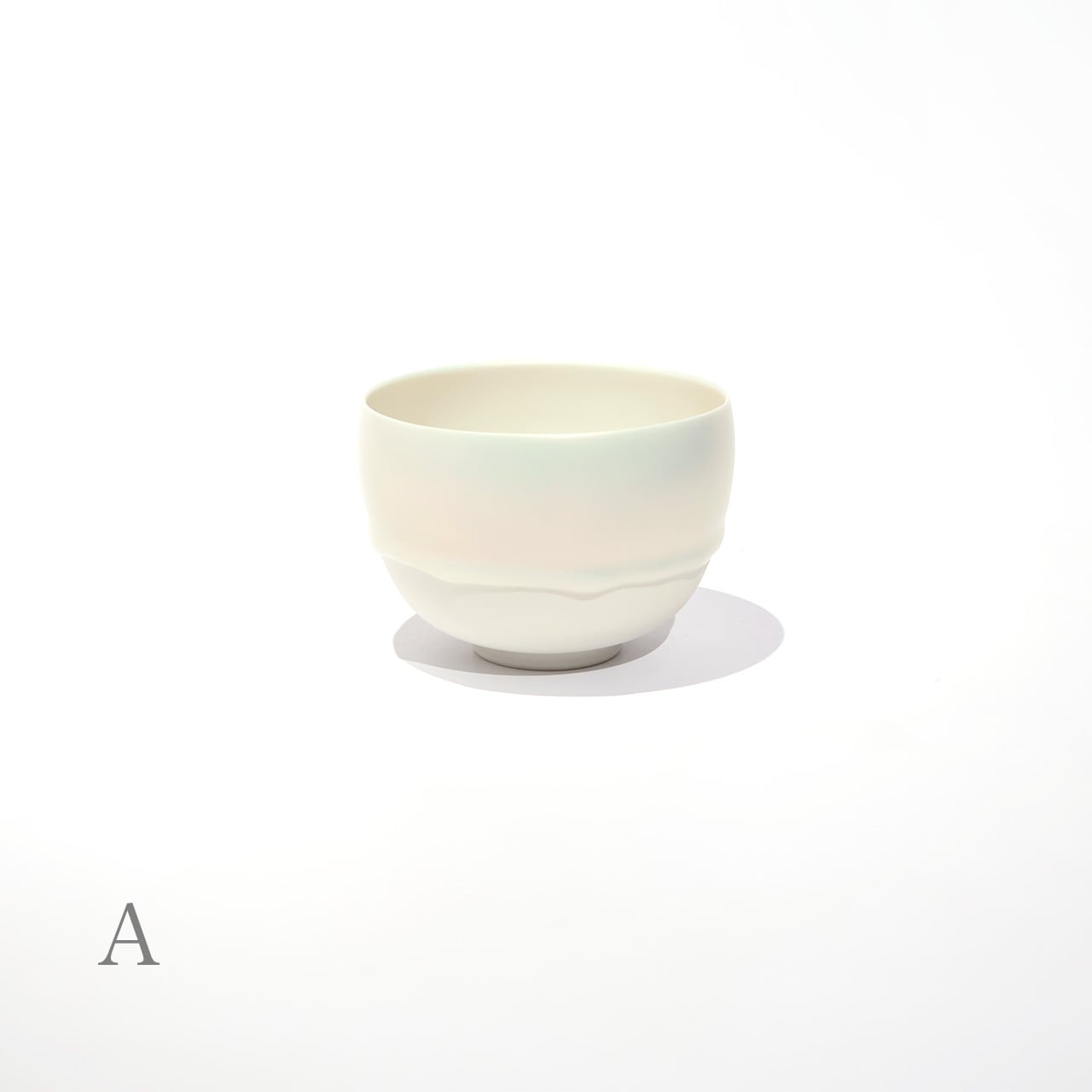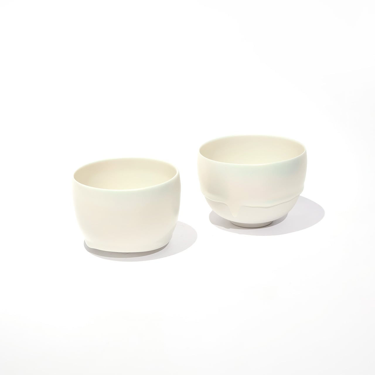 鋳込み成形した後、上部にだけたっぷりと釉薬を掛け、流れ落ちるタイミングを見計らいながら焼きすすめるので、偶然性の高い作品となっています。そのため同じ形、色、模様の作品を作ることはできません。出会いのものとしてお楽しみください。