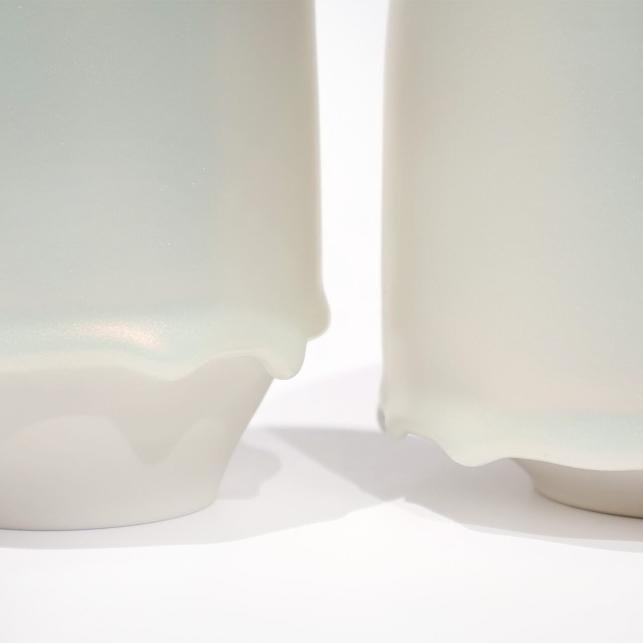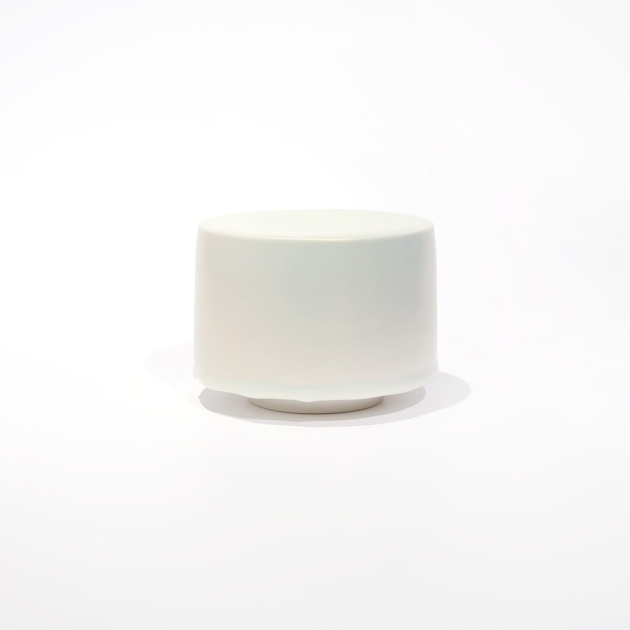 フタから溢れ出しているかのように見える白釉が美しい融点シリーズのフタモノ。