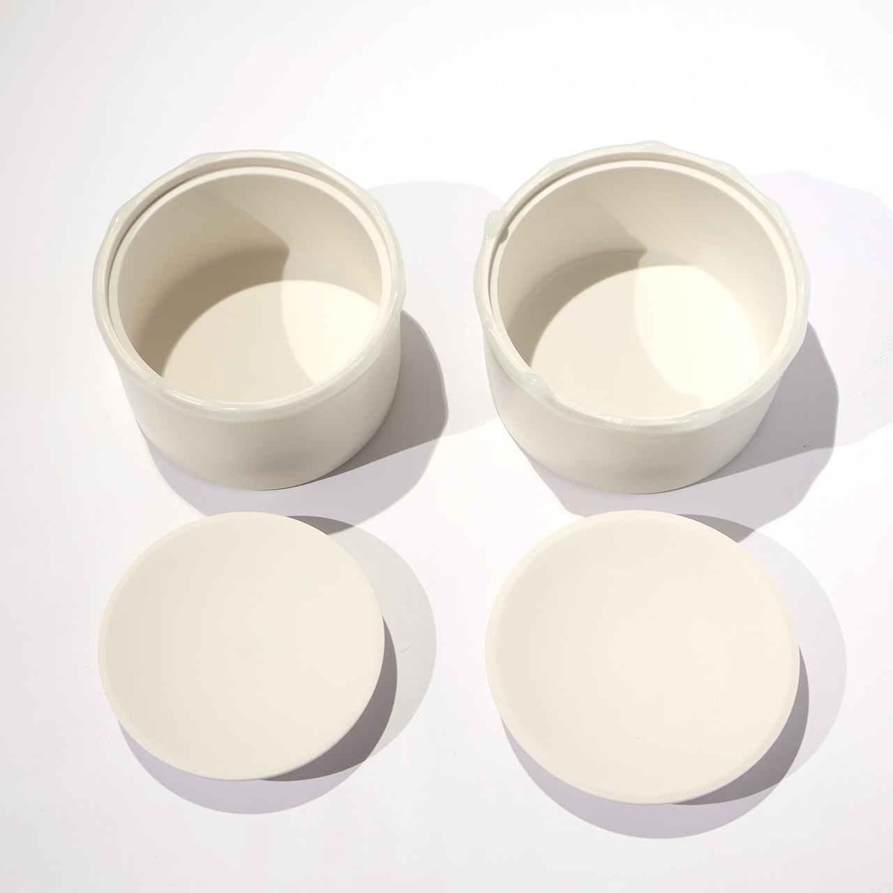 フタから溢れ出しているかのように見える白釉が美しい融点シリーズ。