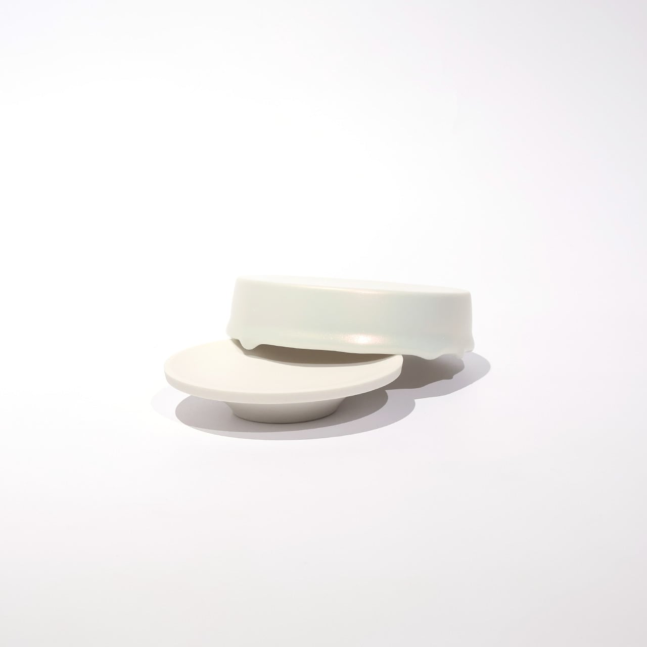 フタから溢れ出しているかのように見える白釉が美しい融点シリーズのフタモノ。