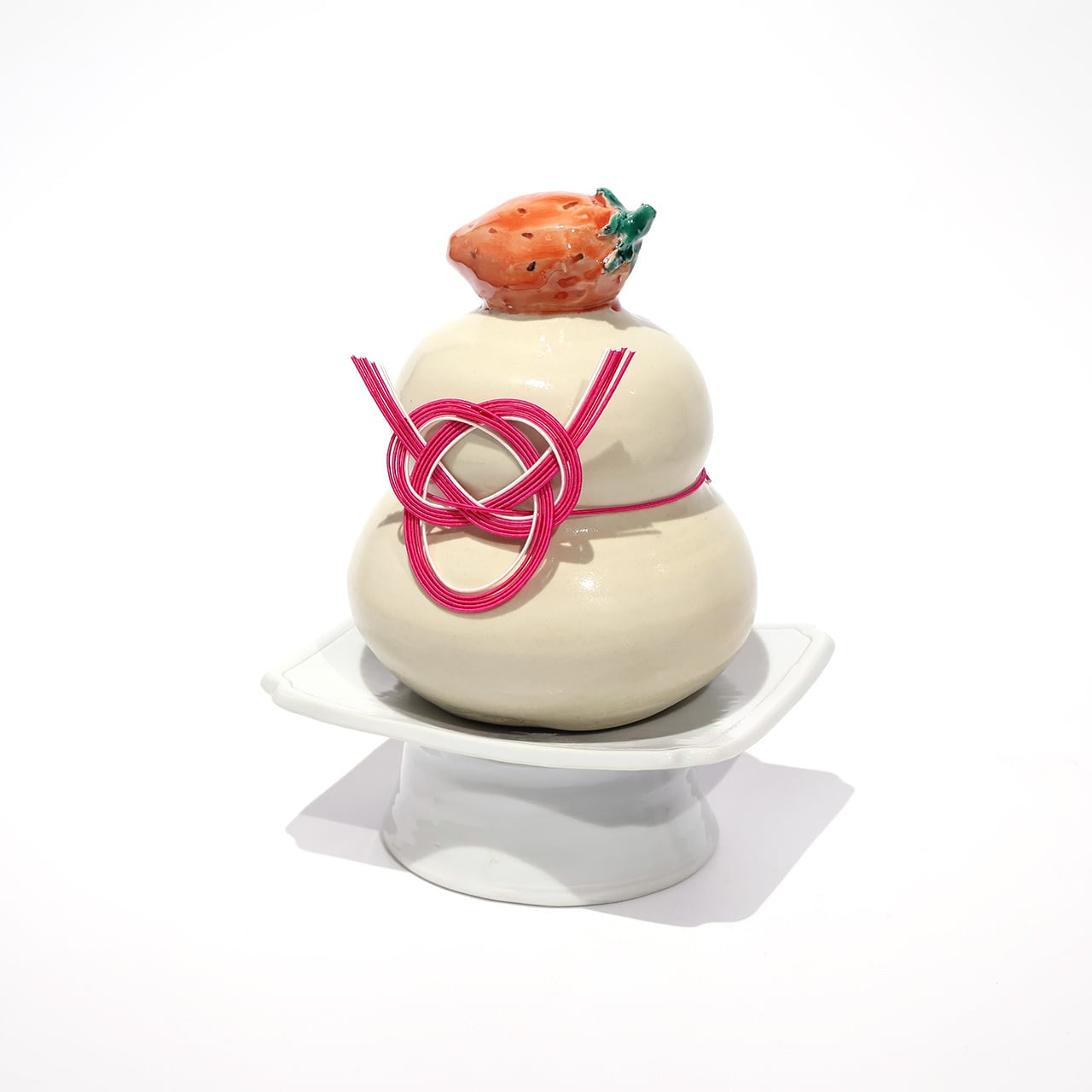 土の温もりを感じる増井洋子さんの作品。お鏡餅や干支飾りにぴったりな気品ある白い台座です。