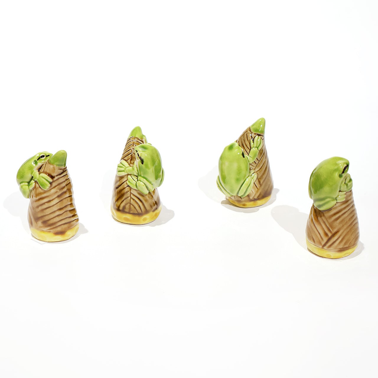 縁起物に抱き着くかえるが愛らしい、手のひらサイズの置き物シリーズ。ちょこんと飾ればかえるが幸せを運んできてくれそうです。