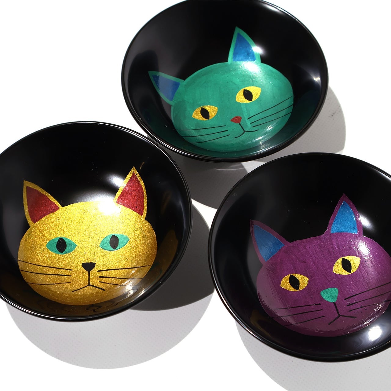 鮮やかな色漆で描かれた猫が存在感抜群!小鉢やぐい呑みとしても活躍しそうです。