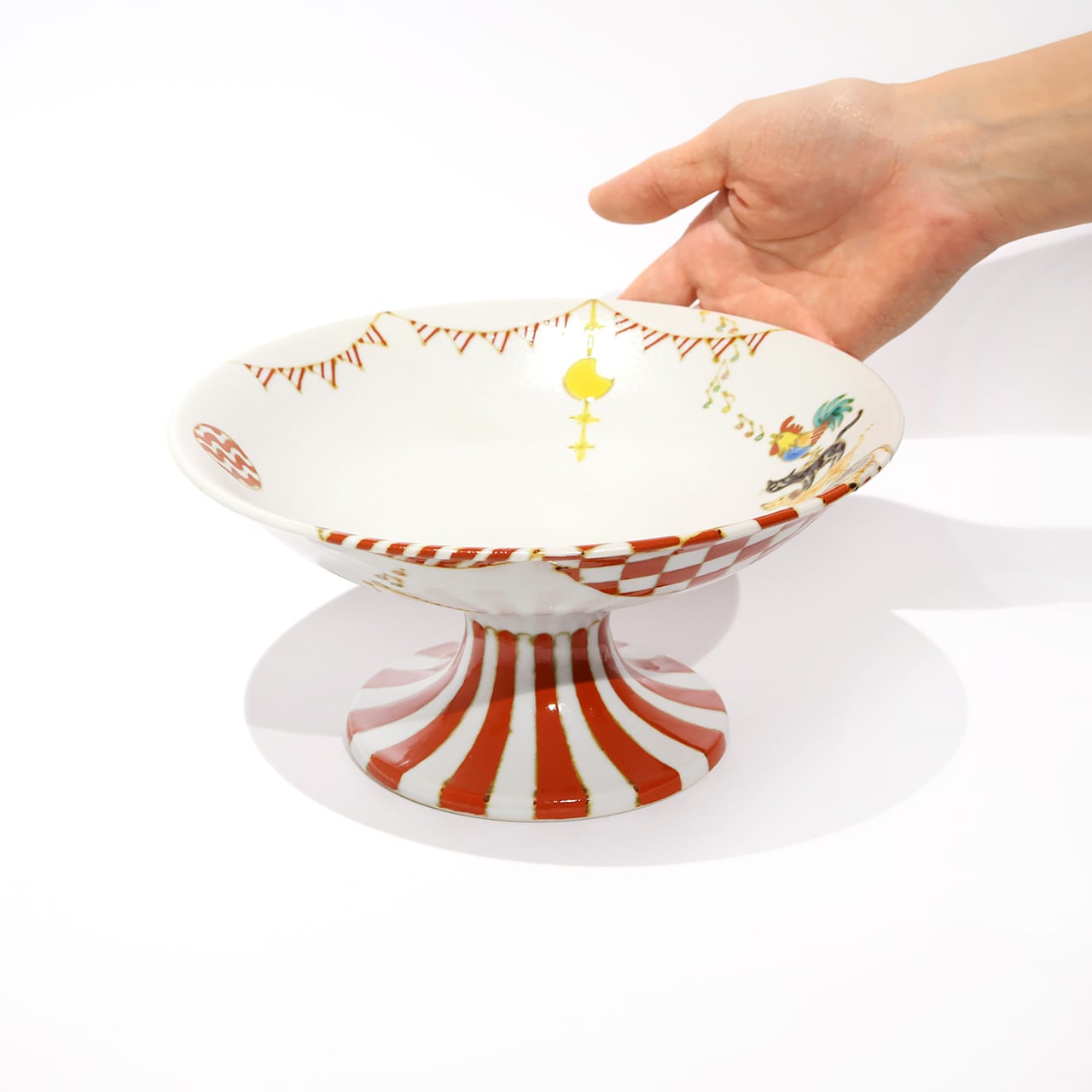 伝統的な九谷の彩色と大胆な構図で独特の世界観を生み出す山﨑裕理さんの作品。