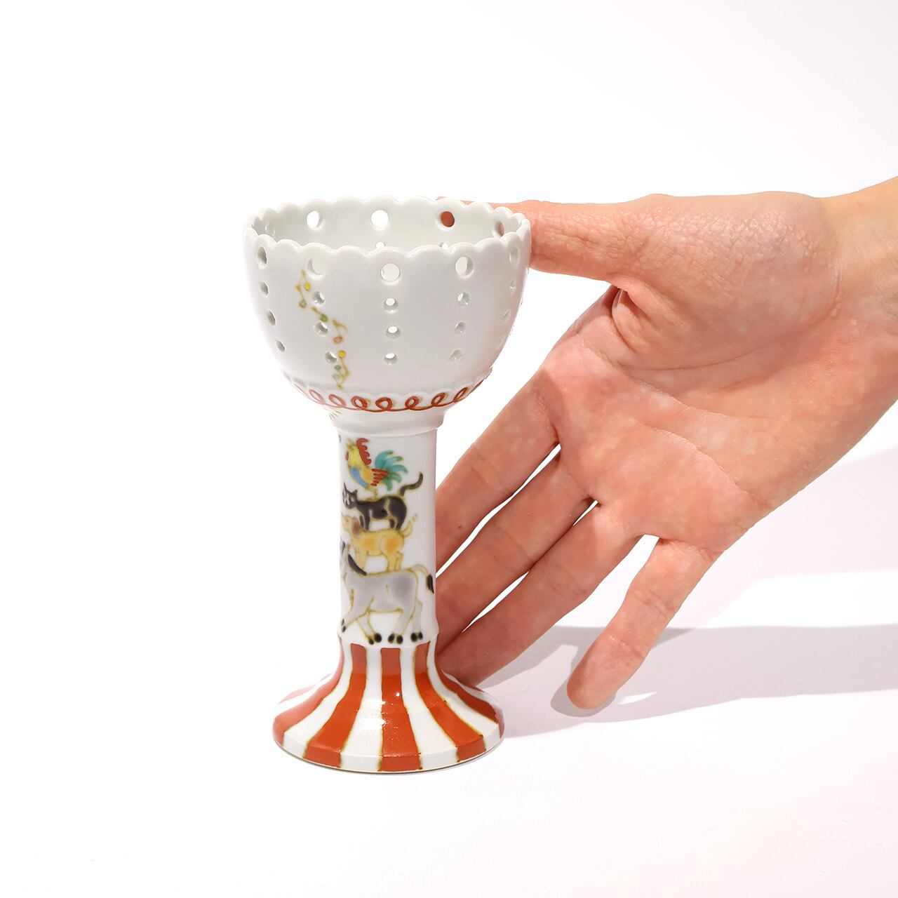 人気のブレーメンの音楽隊の絵付けシリーズ。クリスマスのテーブルコーディネートやお部屋のアクセントにいかがでしょうか。器に開けられた穴から漏れる灯りが幻想的な雰囲気です。