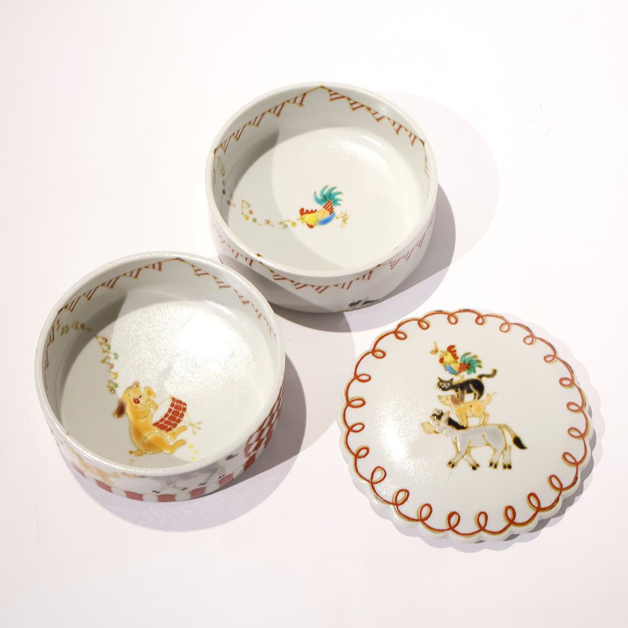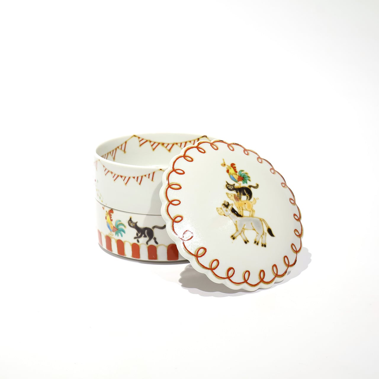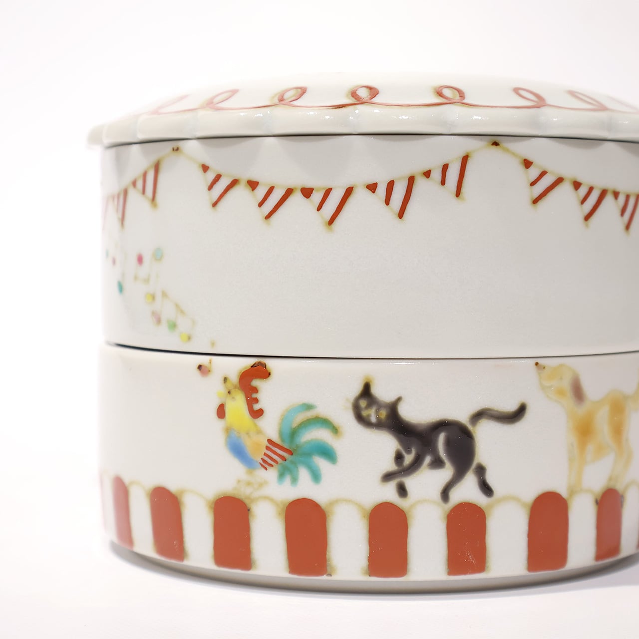 なんとも可愛らしいお重です。菓子器としても使えると思います。来客時のティータイムに上下に様々なお菓子を詰めてのおもてなしも楽しいのでは。