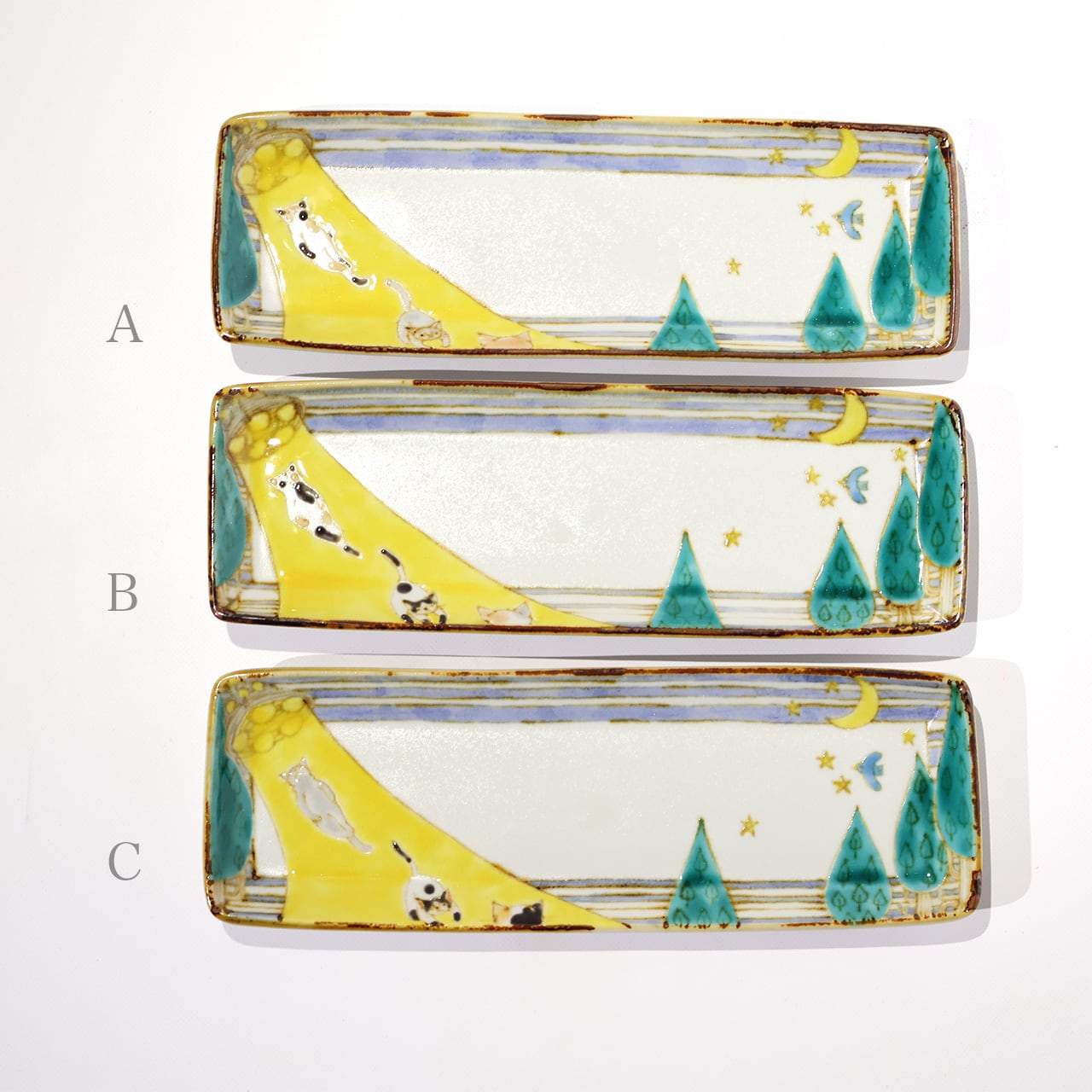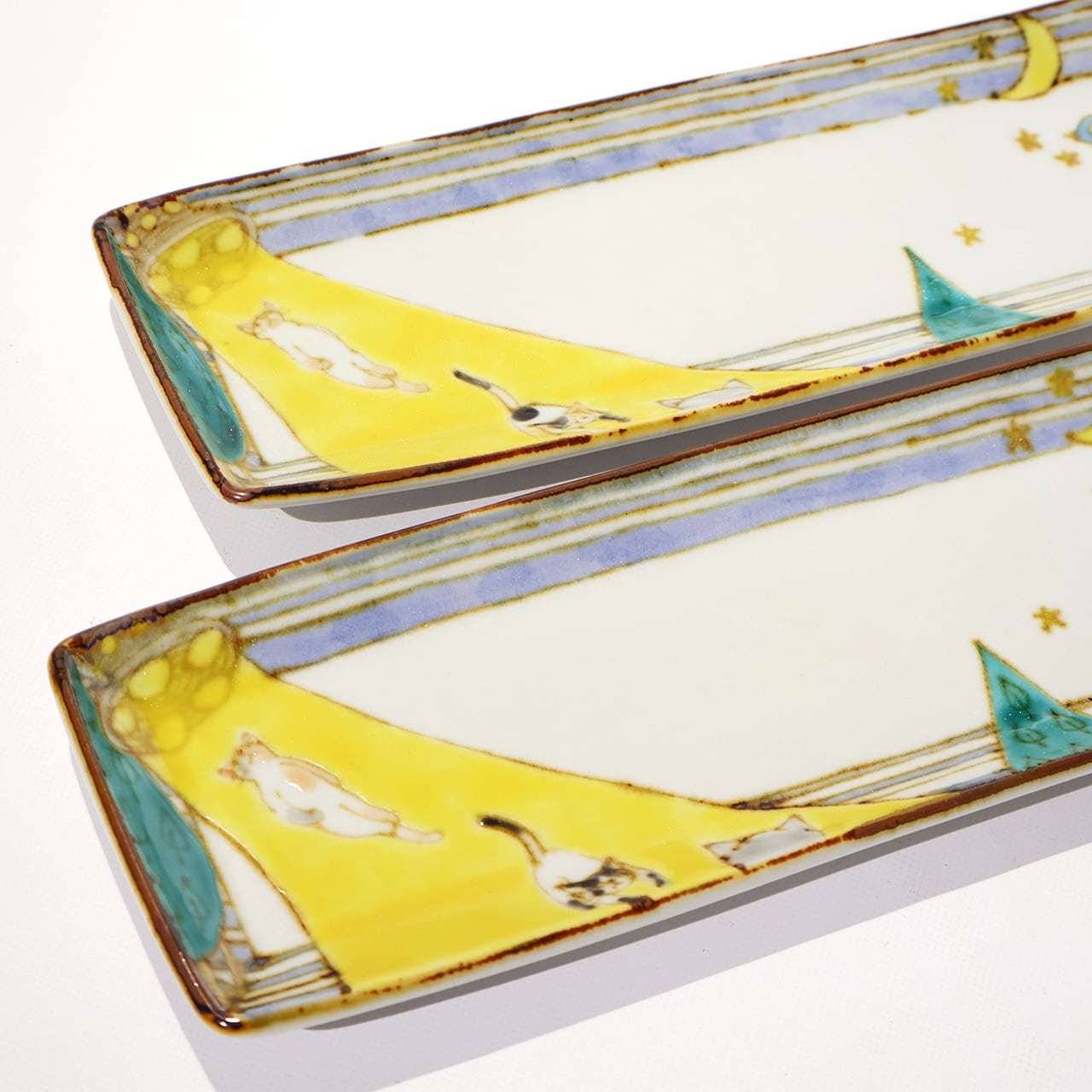 連れ去られる猫たちのポーズが秀逸!食卓の話題を独占しそうなユニークな角皿です。UMAも猫の魅力に骨抜きにされてしまいそうですね。