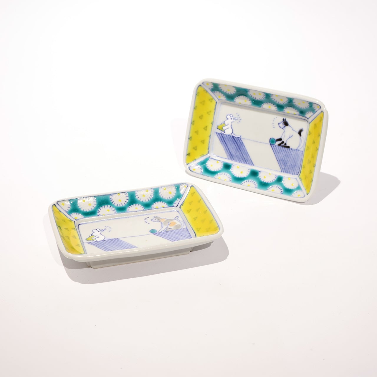 猫と鼠のコミカルな関係性が面白い角皿です。