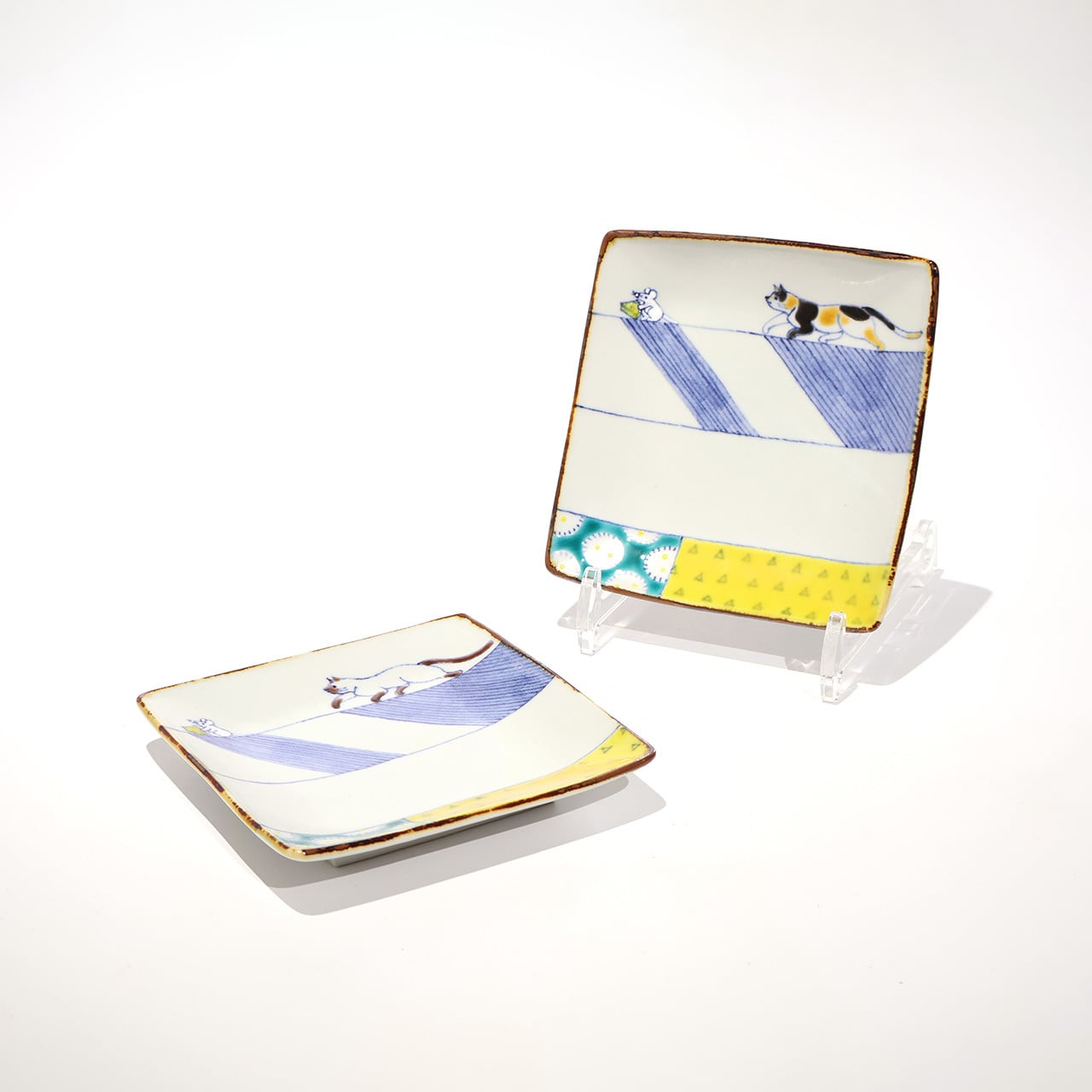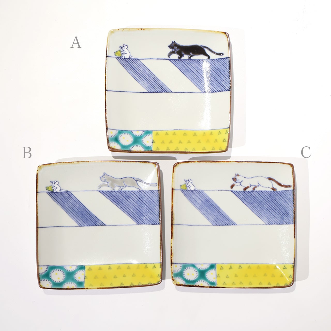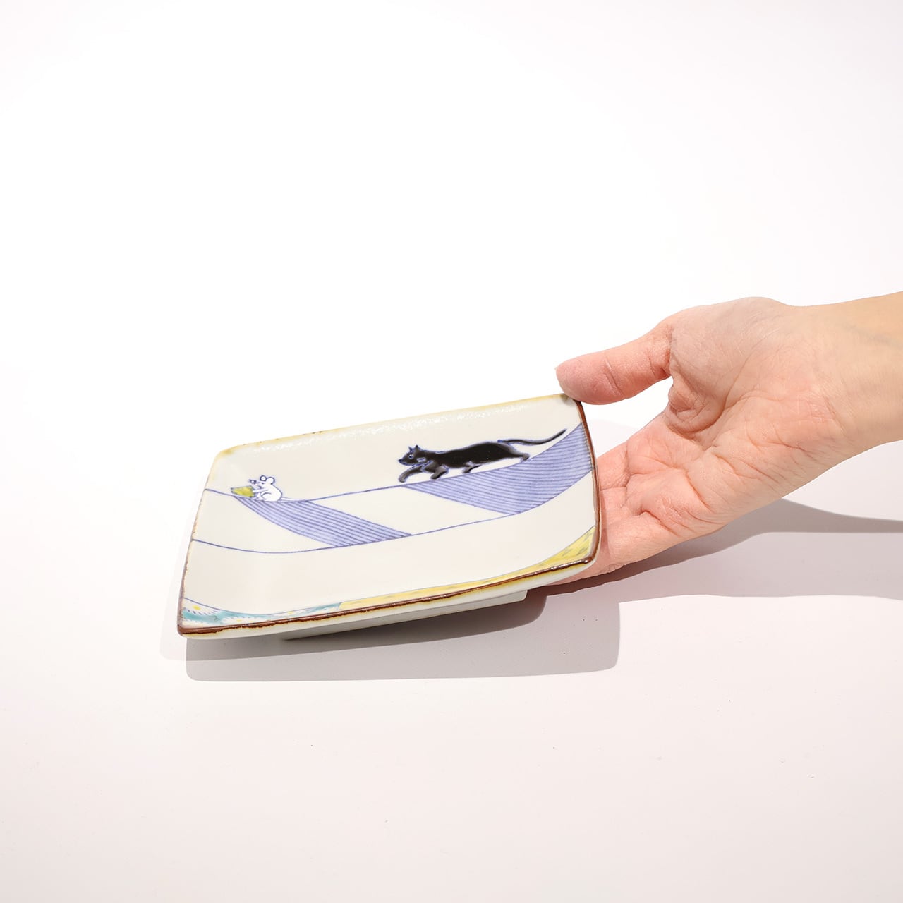猫と鼠のコミカルな関係性が面白い角皿です。