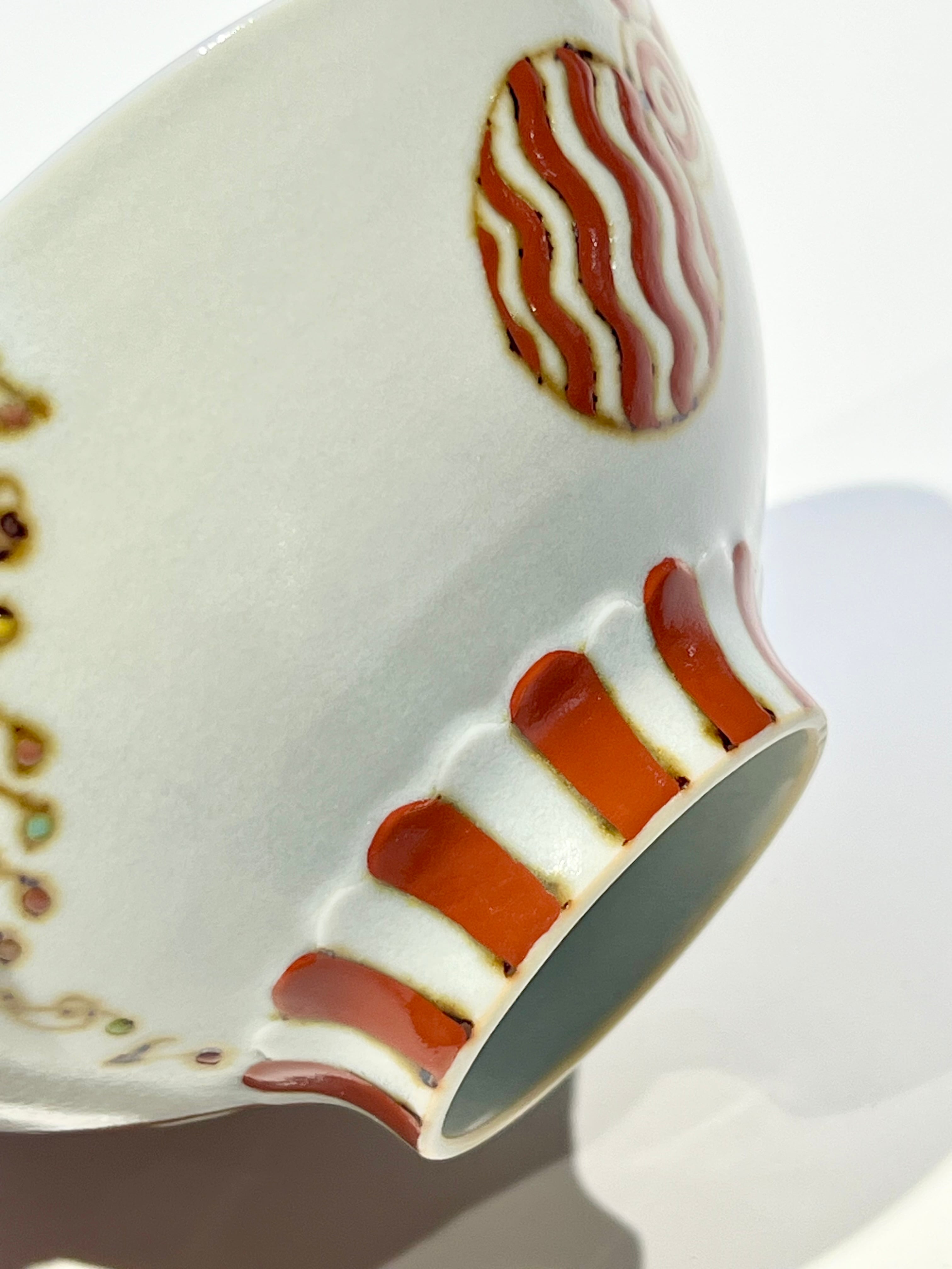 伝統的な九谷の彩色と大胆な構図で独特の世界観を生み出す山﨑裕理さんの作品。