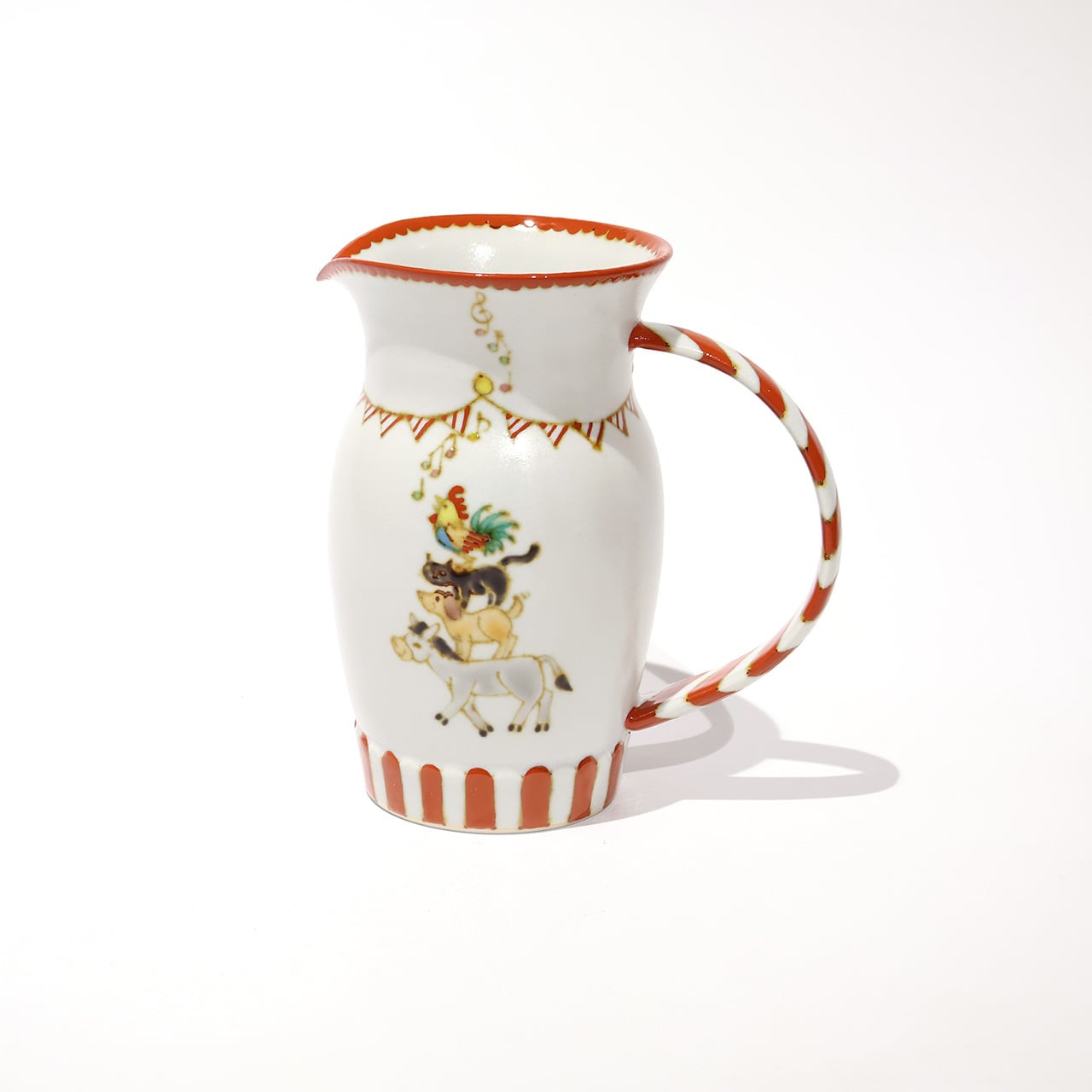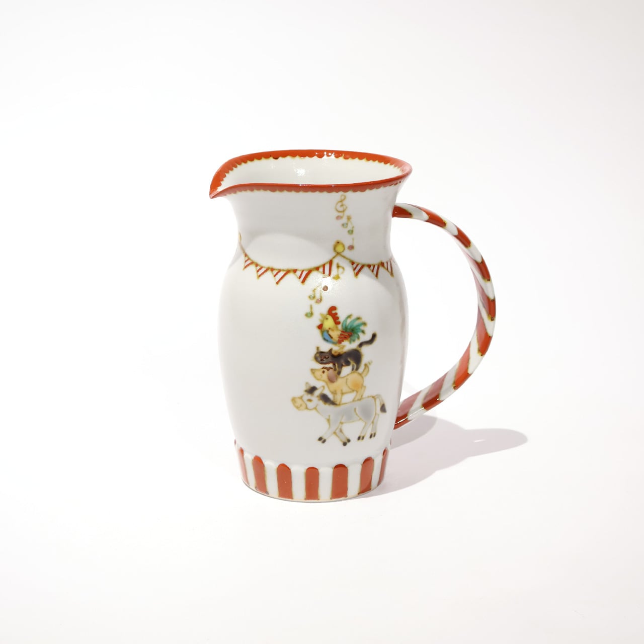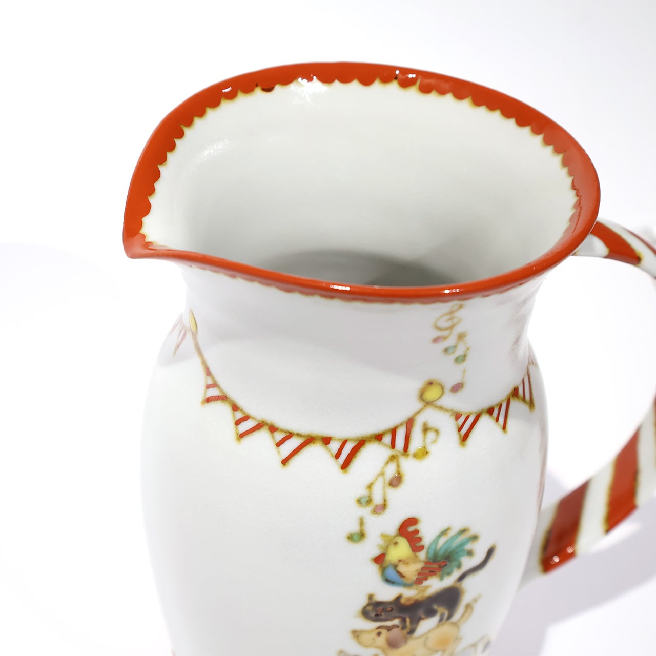 人気のブレーメンの音楽隊の絵付けシリーズです。飾って楽しむもよし、本来の用途ピッチャーとして、花瓶としてもお使いいただけそうです。