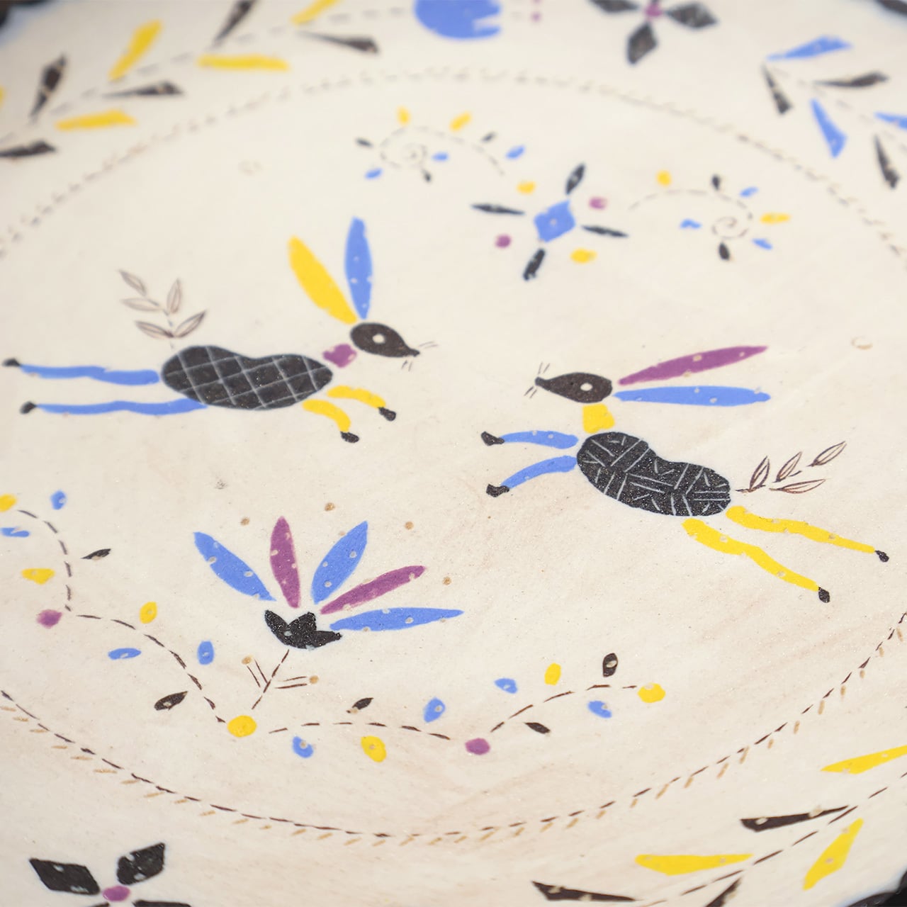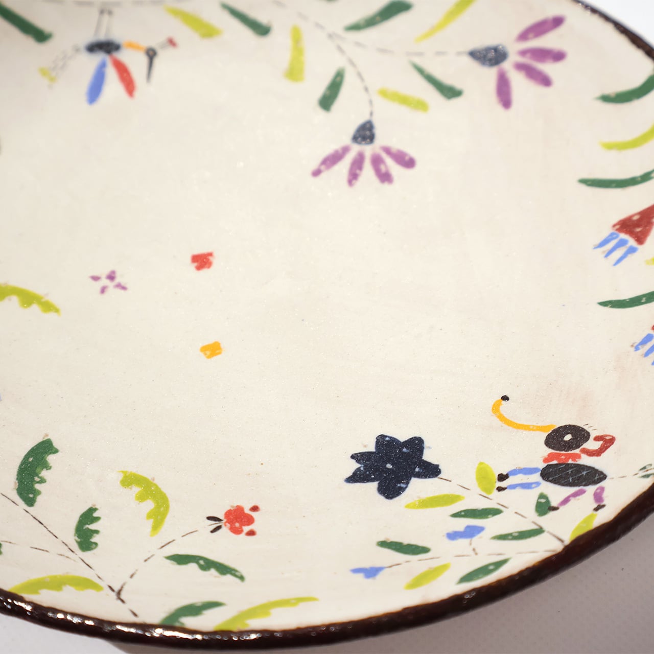 色鮮やかな草花にウマや魚などの生き物たちが絵付けされたプレート皿です。軽いモーニングプレートを作ったり、ケーキなどのデザートを盛り付けたり、色々お楽みいただけます。