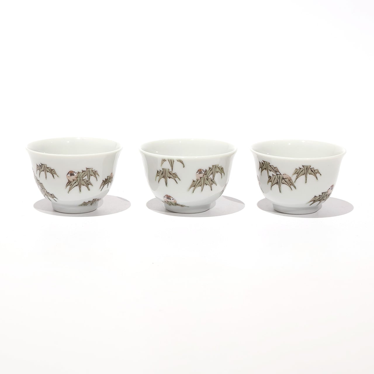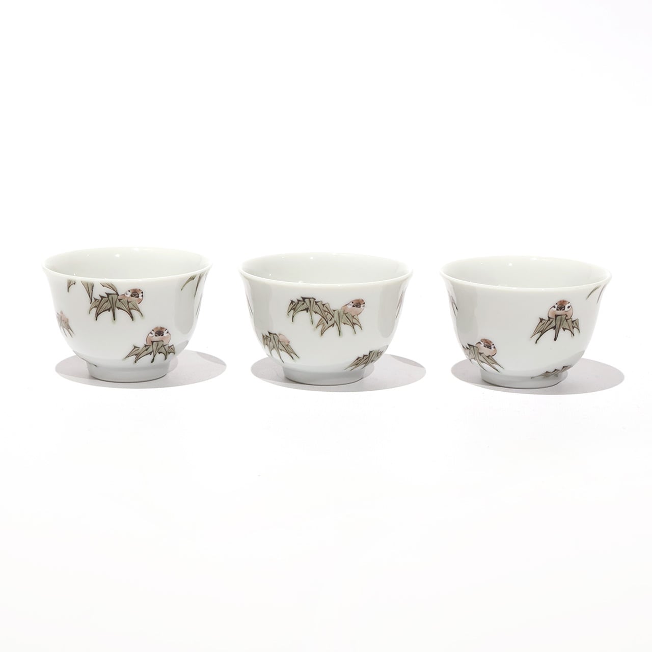 竹から顔を覗かせるすずめが可愛らしいぐい呑みです。