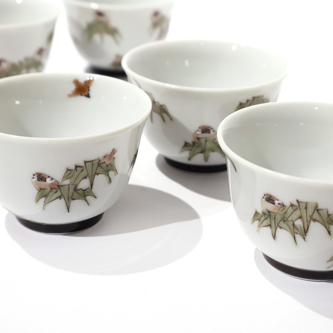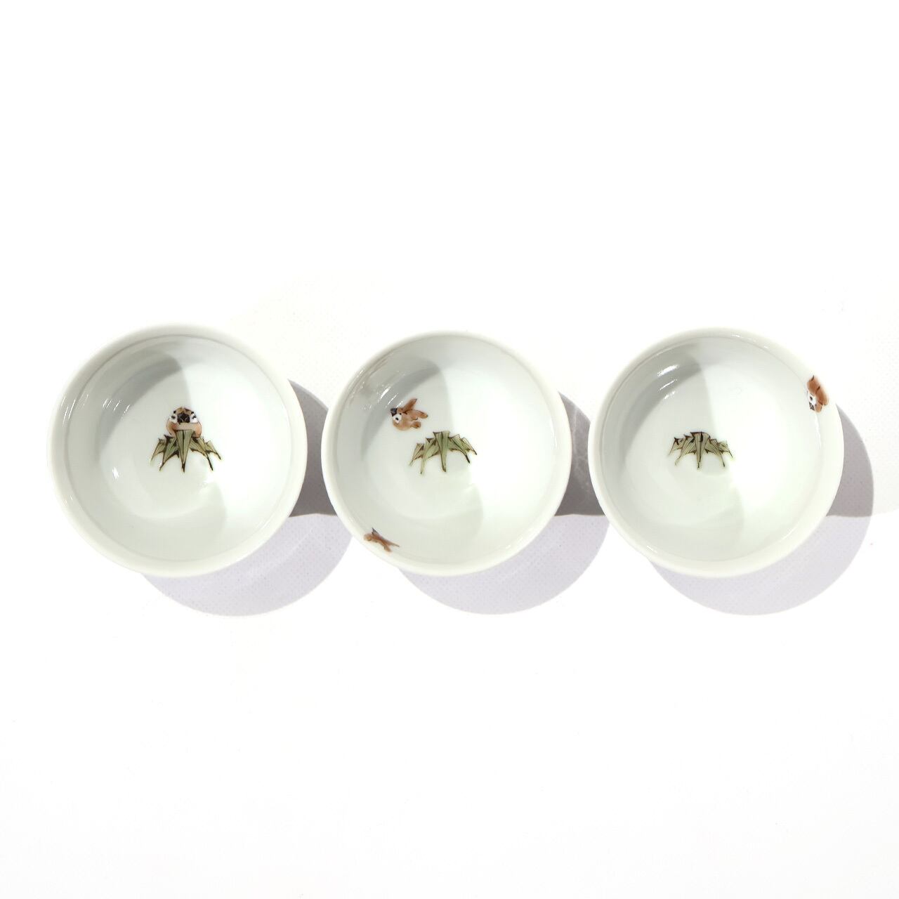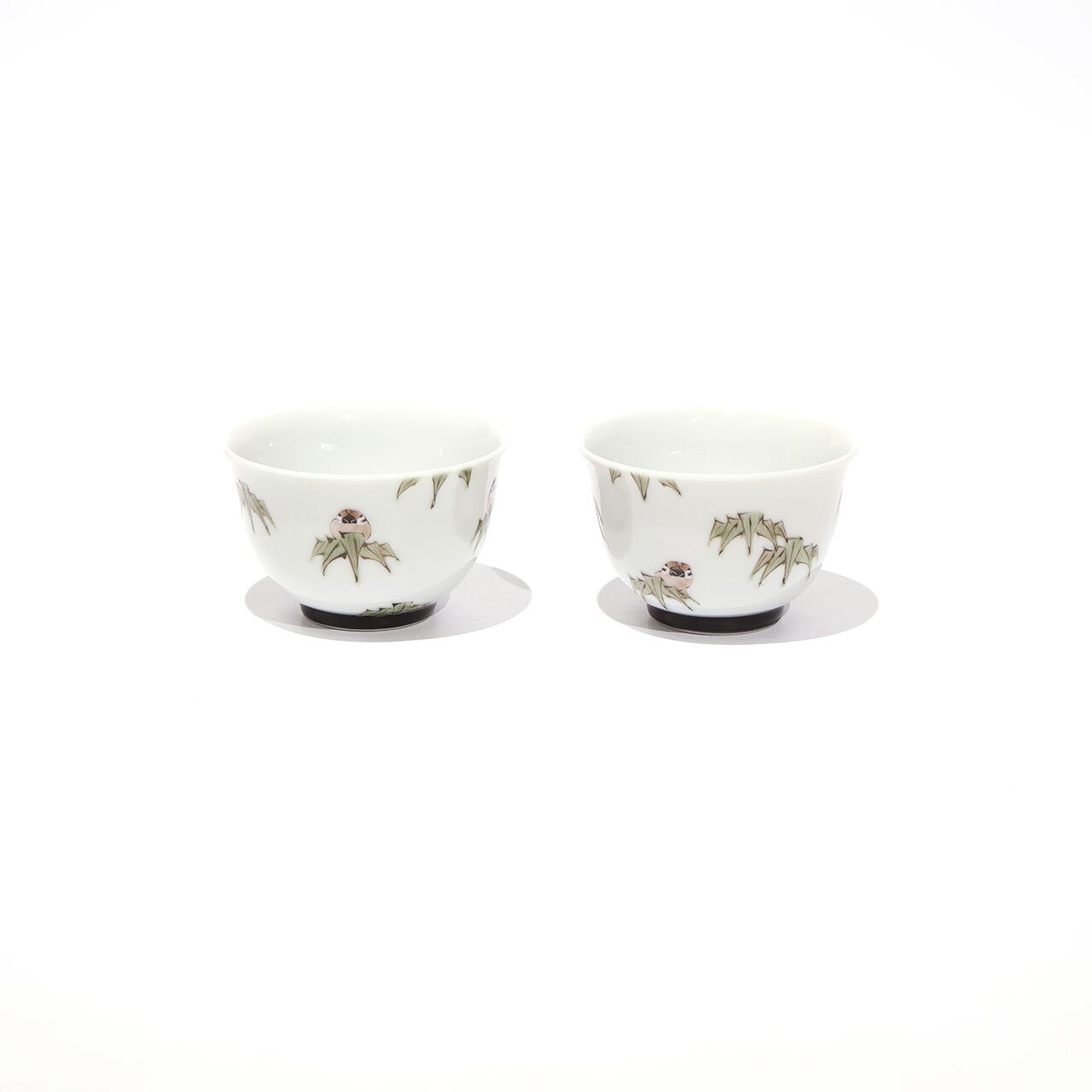 竹から顔を覗かせるすずめが可愛らしいぐい呑みです。同シリーズの片口、汲出碗もございます。