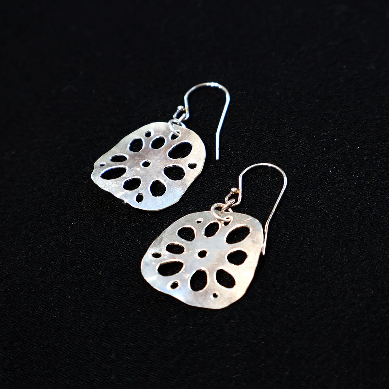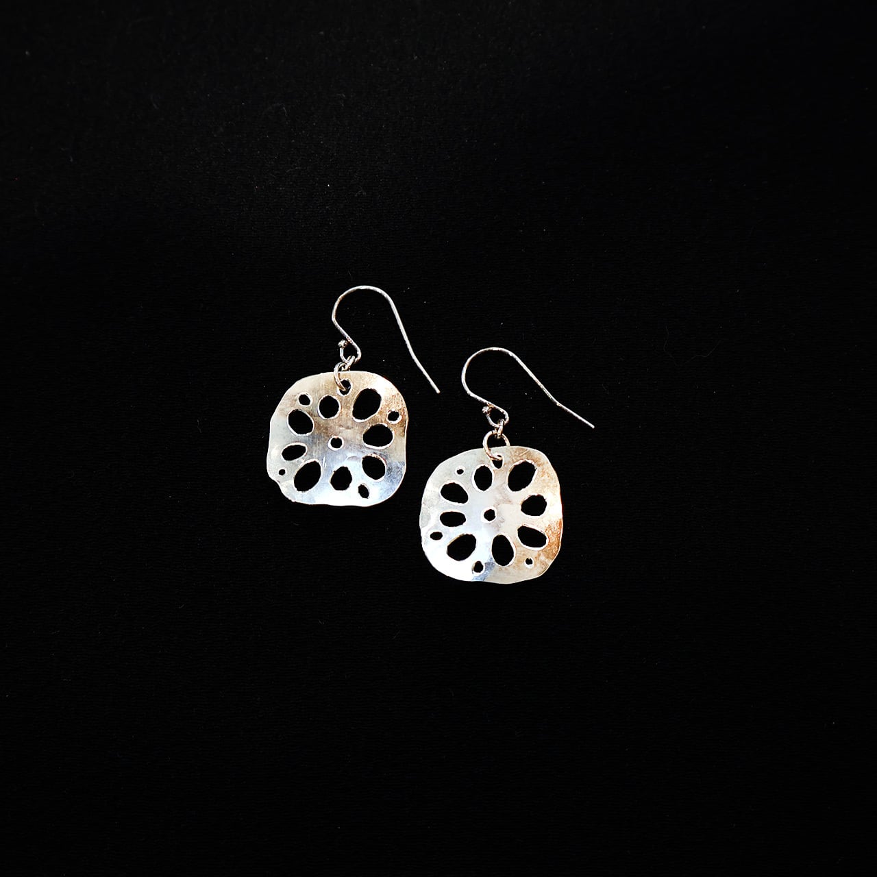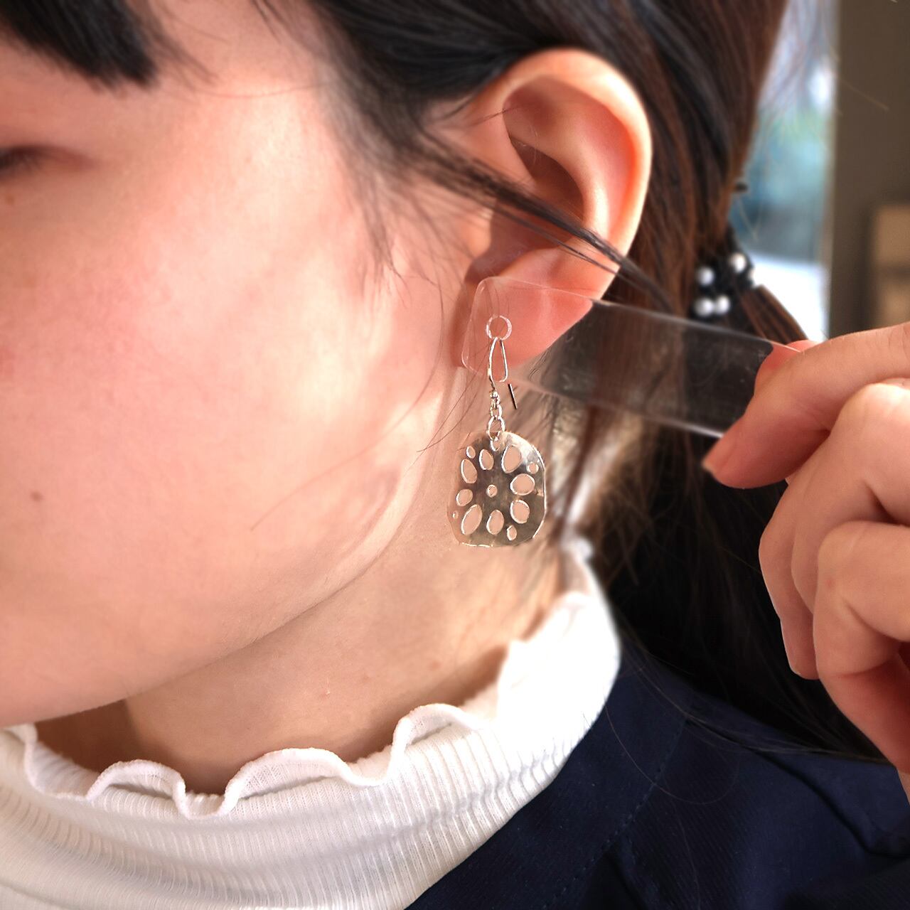 一見シンプルながら、中央がやや盛り上がった手の込んだデザインのピアスです。細かな手作業で作られた、作家の愛情とこだわりが感じらる作品。純銀の上品な輝きがどんなスタイルにもマッチします。