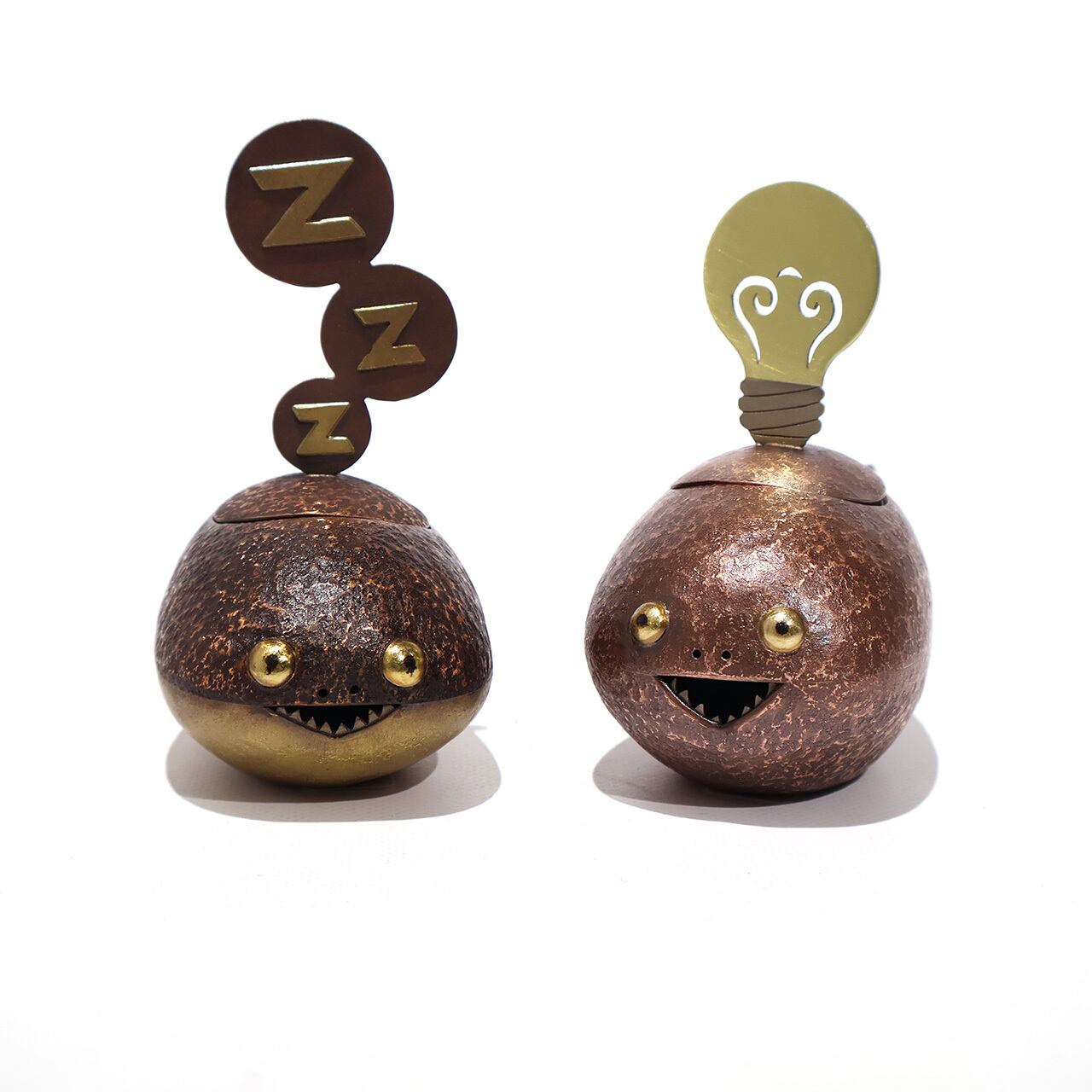 鍛金、彫金の技法を用い、銅や真鍮といった金属を金槌で叩いて加工し、身体から関節のパーツまで1つ1つを手作りで制作されています。