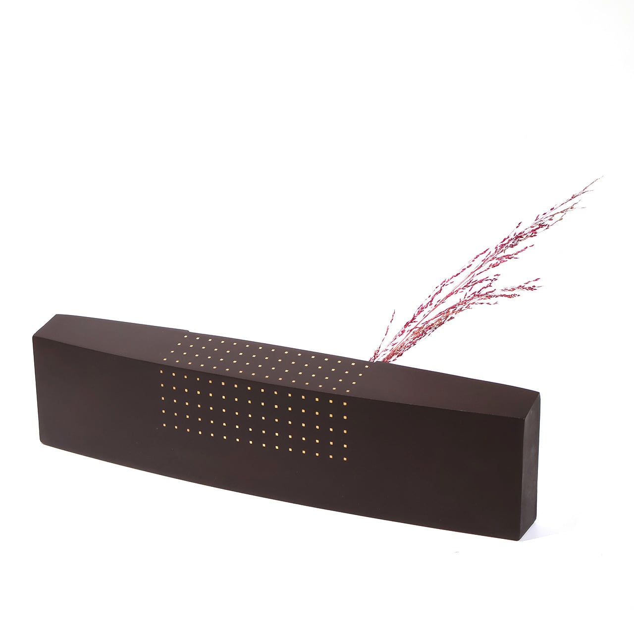 静かな存在感のある作品。ドライフラワーを挿しても素敵です。余白ある空間や象嵌による施しも目を惹きます。