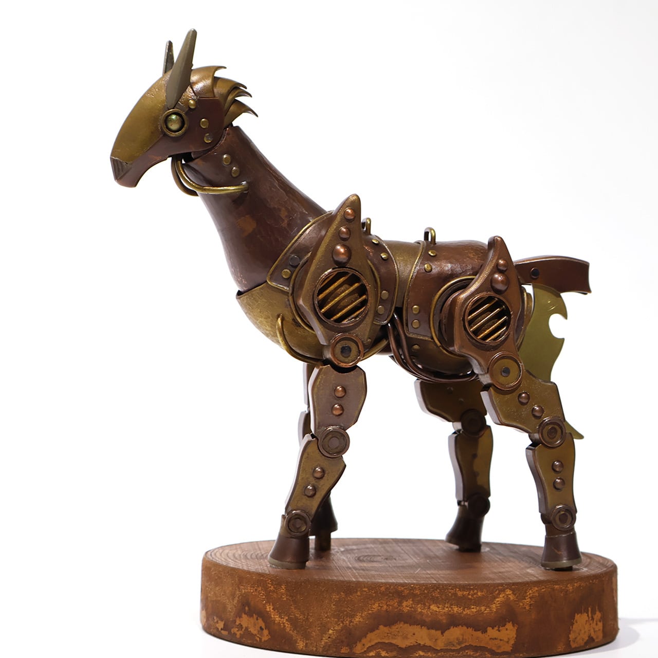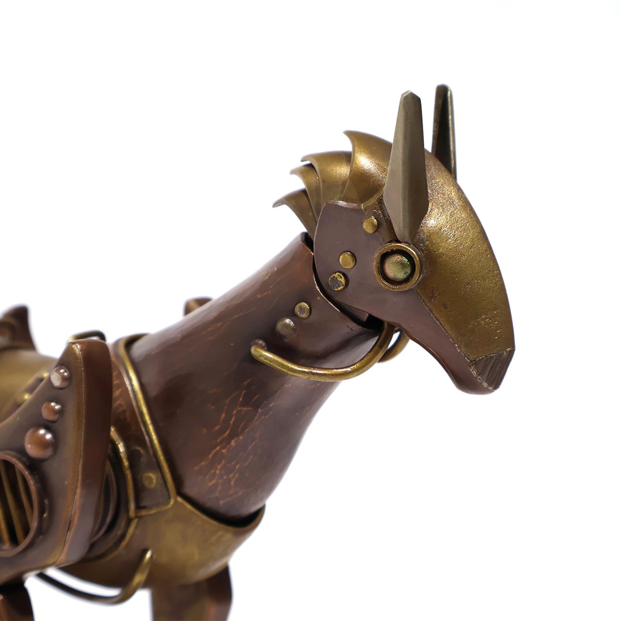 メカニカルで緻密な造形がかっこよく、つぶらな瞳が可愛らしい馬のオブジェです。