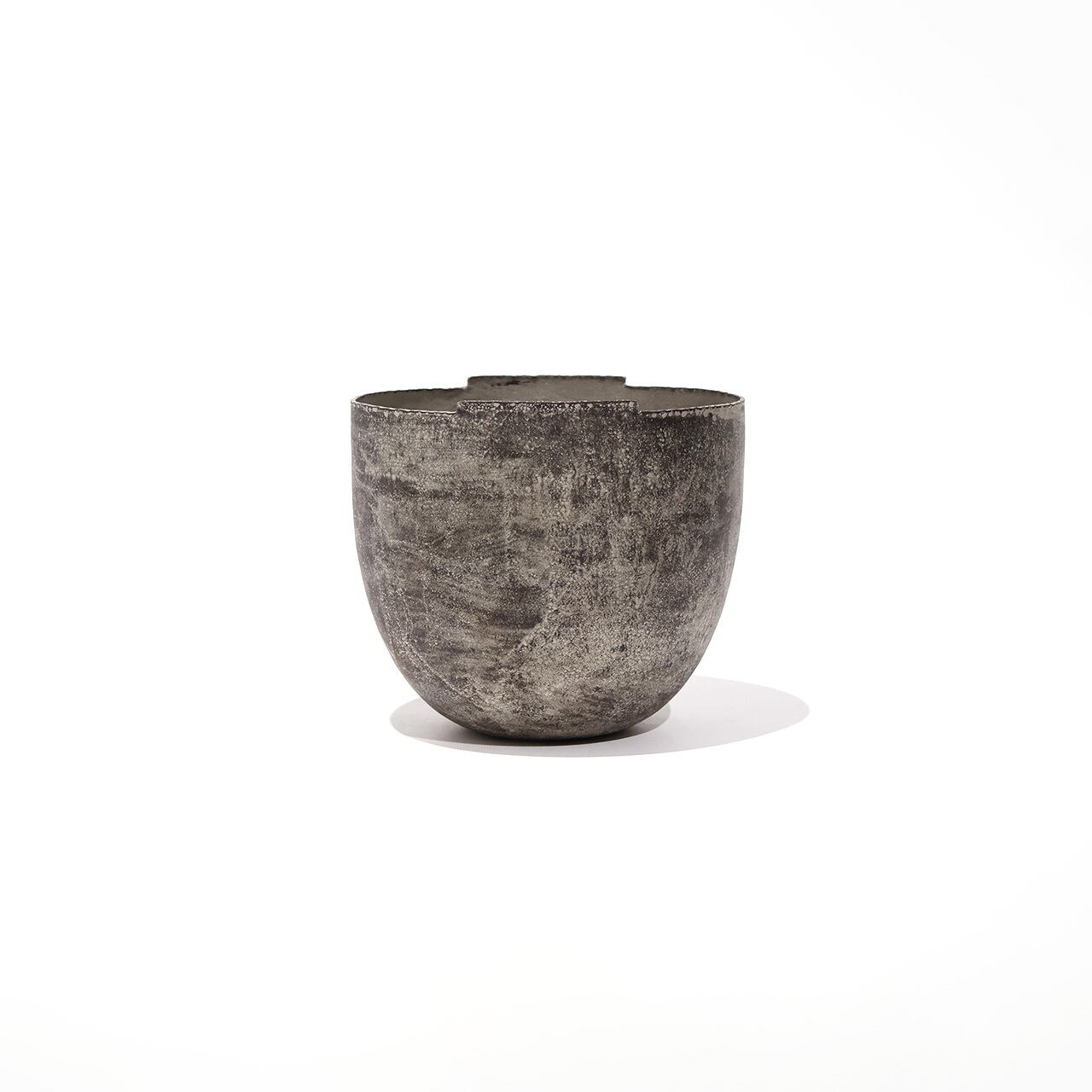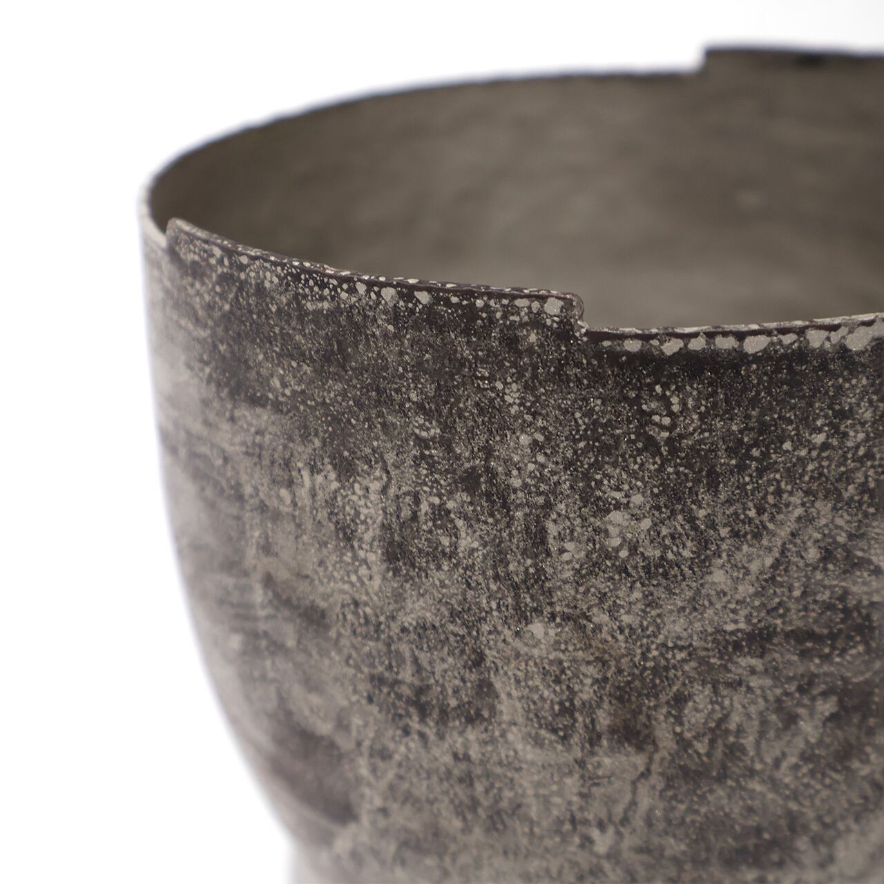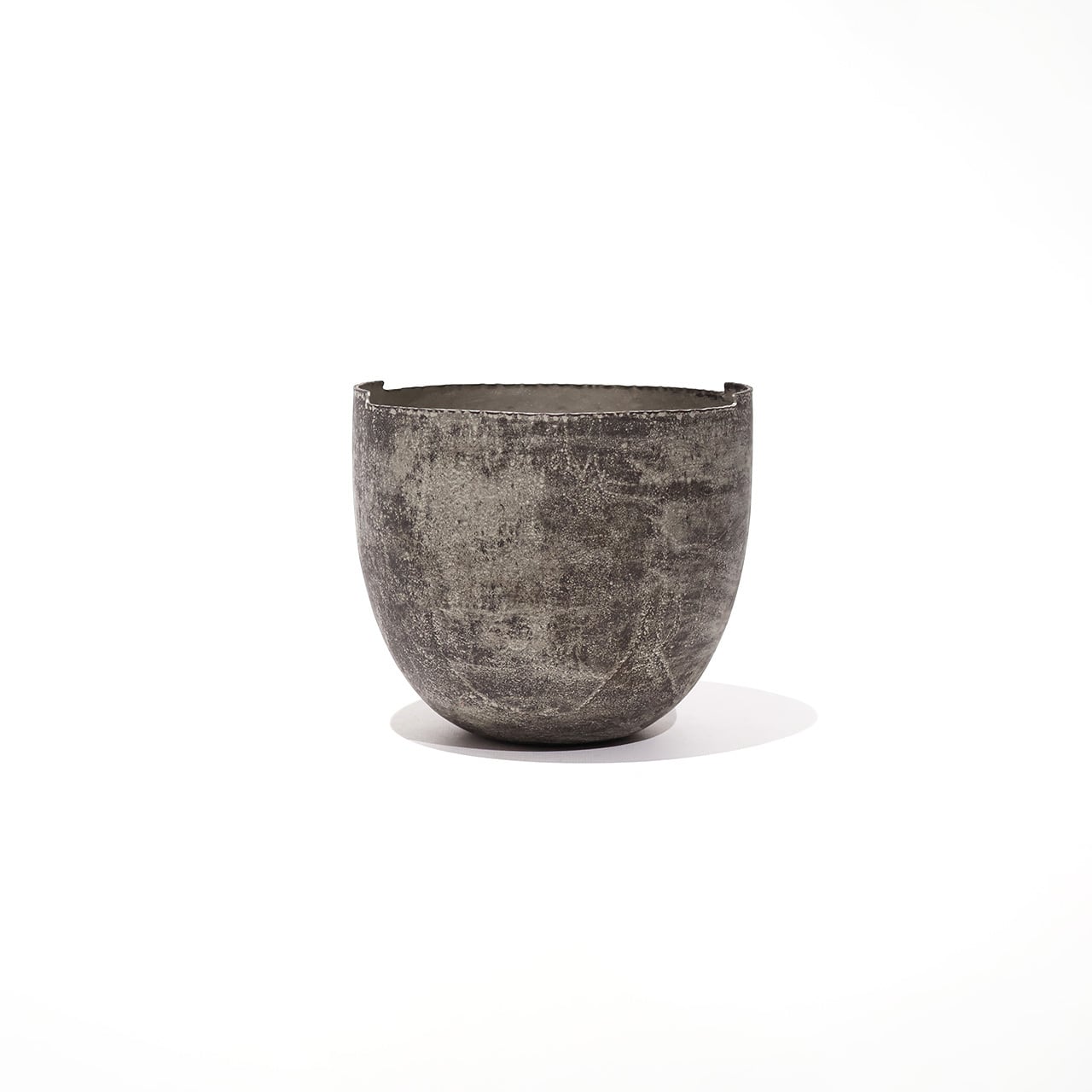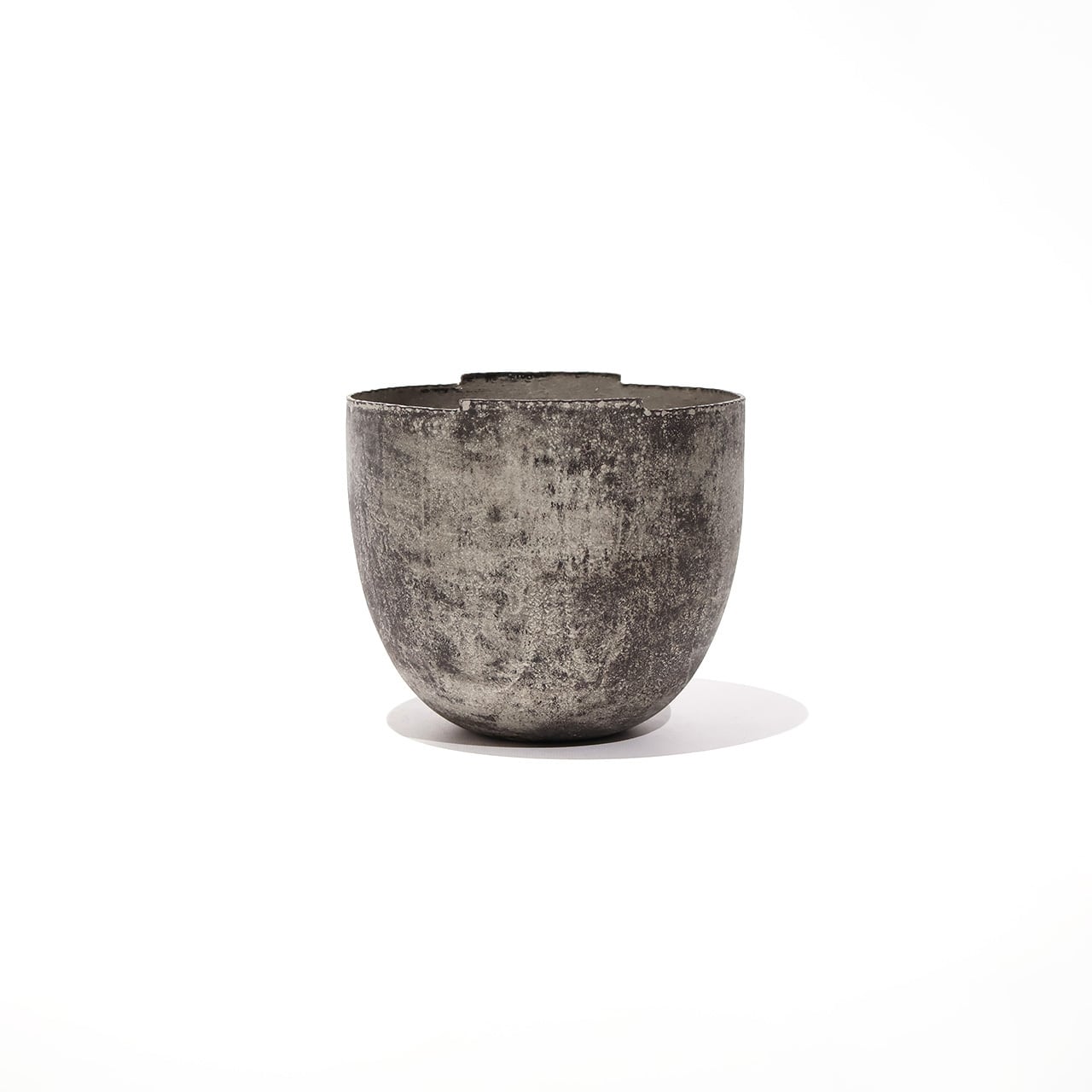 金工技法のひとつ金属を叩いて制作する鍛金の技法とジュエリー会社で習得した彫金の技術を用いて出来上がる作品は、金属という硬質なイメージとは裏腹にやわらかでしなやかな印象をもたらします。銅と錫によって生み出される表情は独特でありながら、自然に似た静けさを感じさせます。茶室の空間を一層引き立てながらも調和する建水です。