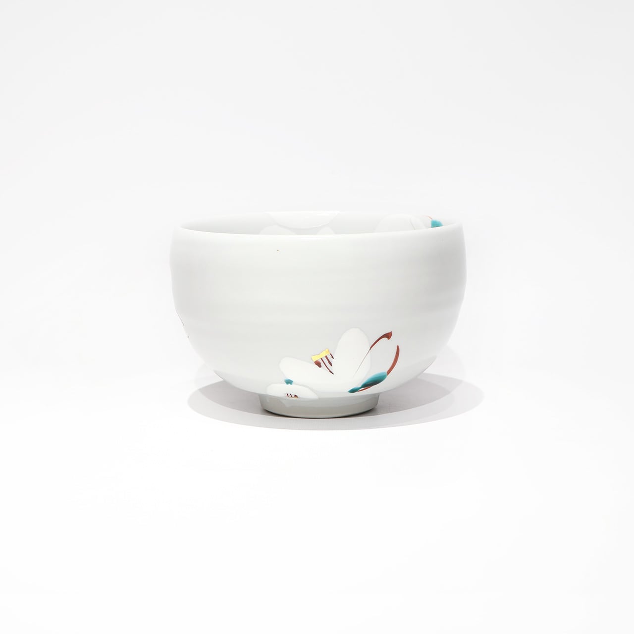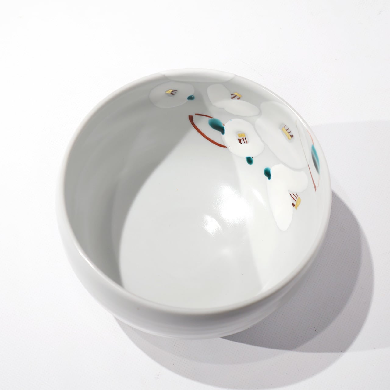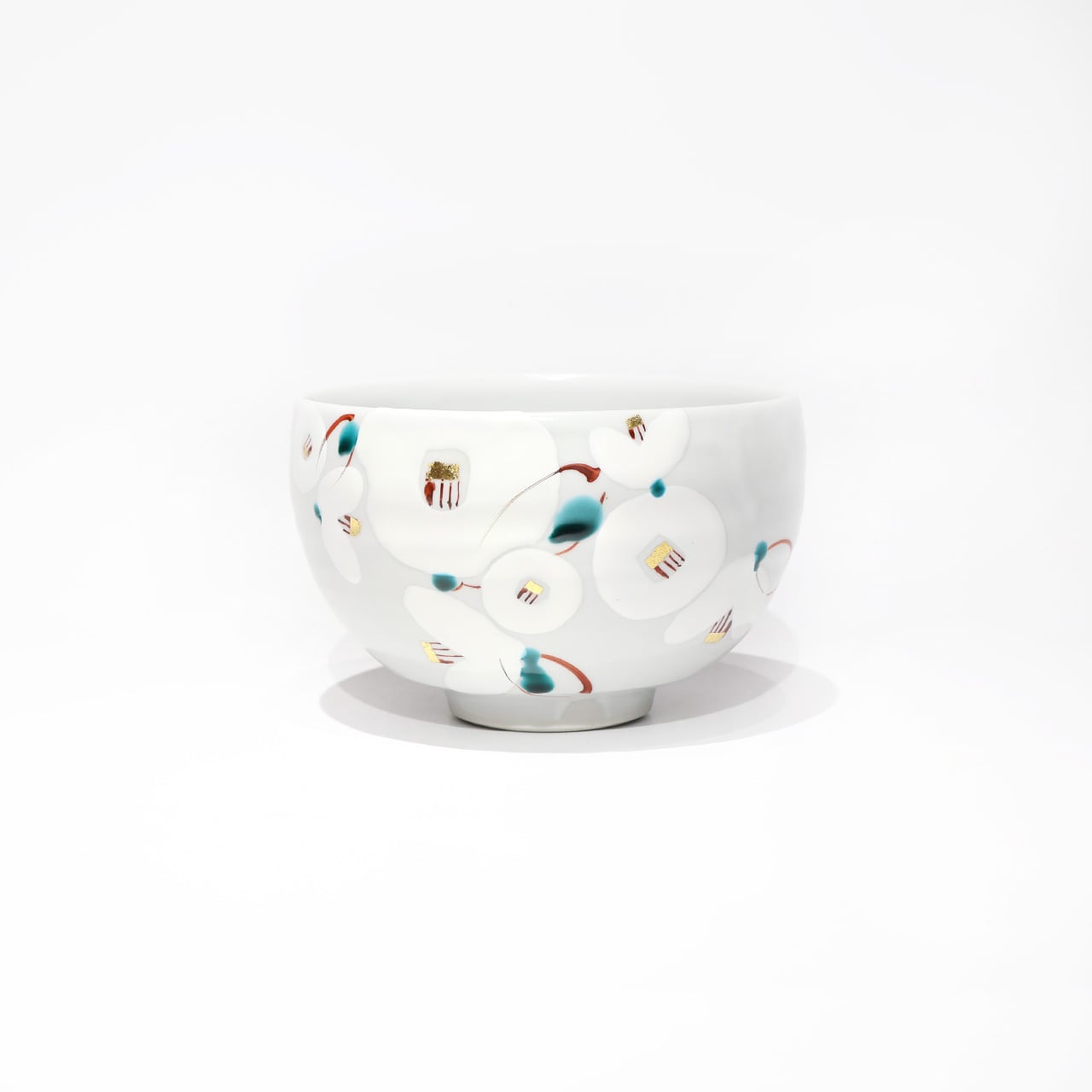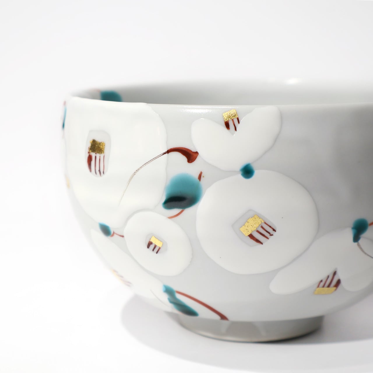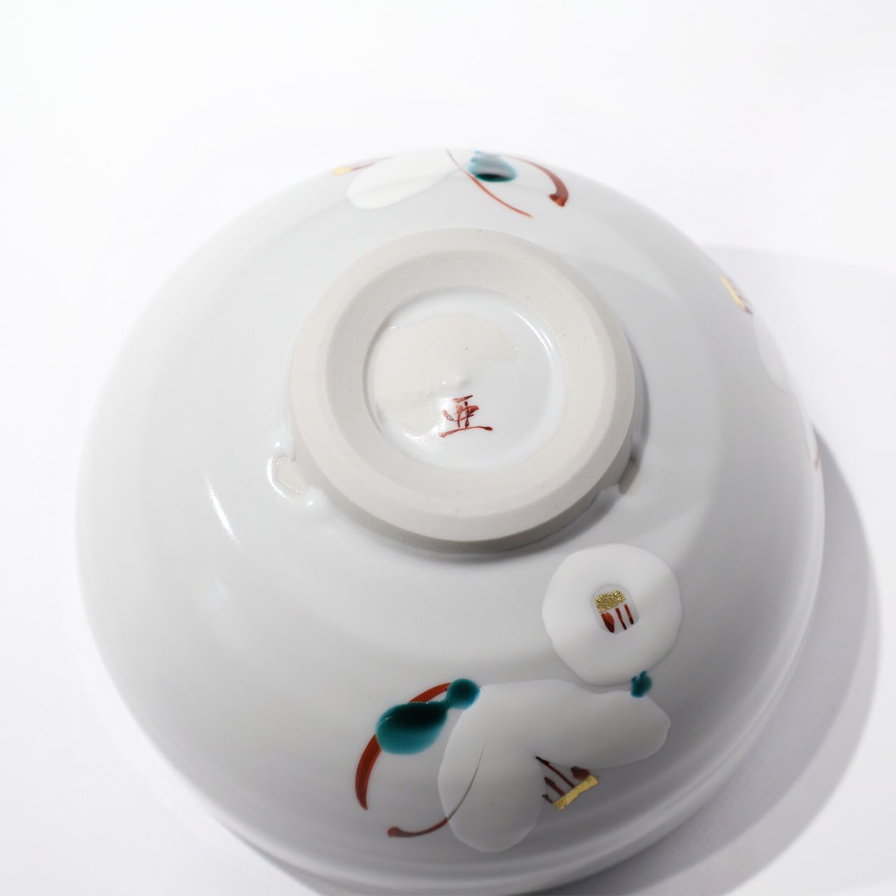 白い地に白椿の絵付けからは凛とした冬の寒さが表現されているように感じる作品です。今の時期の趣向にいかがでしょうか。