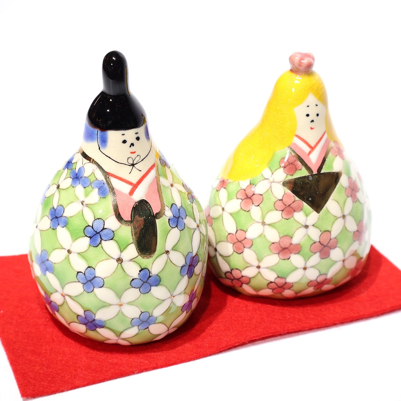 髪の色や着物の柄ゆきに作家独自の世界観を感じる個性豊かな内裏雛です。大きくはないけど、ひときわ目を惹く可愛らしさです。