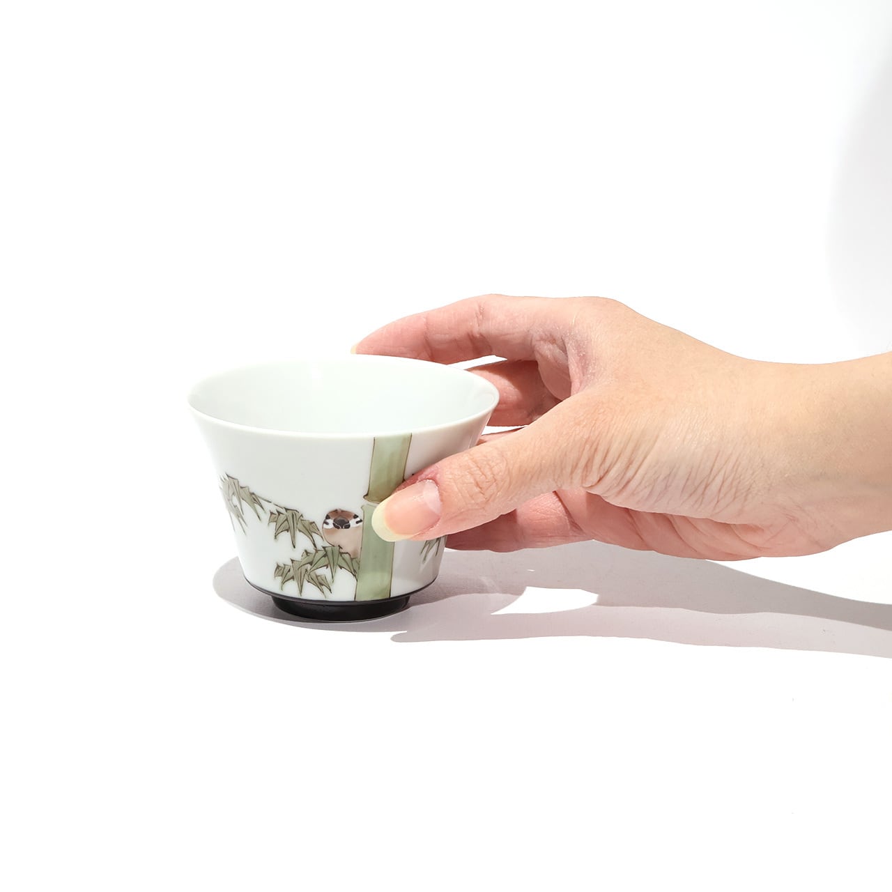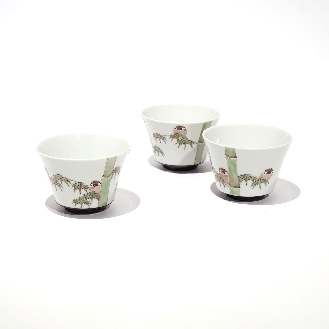 竹から顔を覗かせるすずめが可愛らしい汲出碗は、おもてなしの席も和やかな笑顔で溢れそうですね。同シリーズの片口、ぐい呑みもございます。