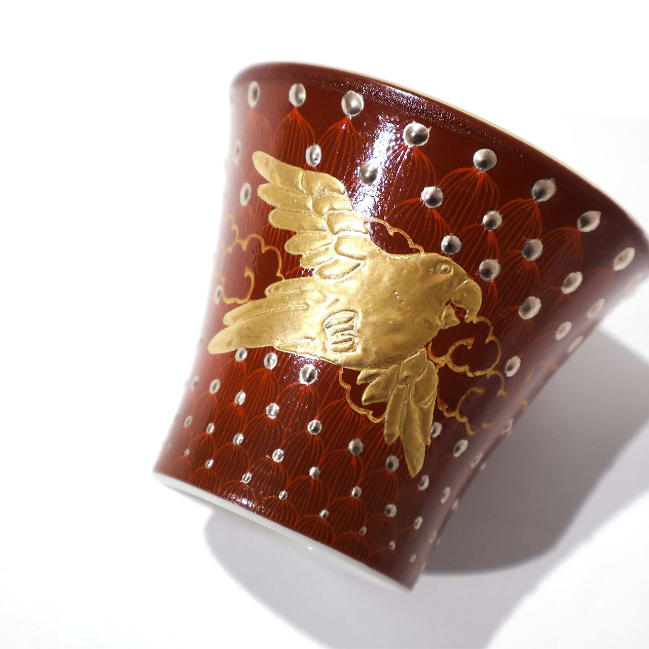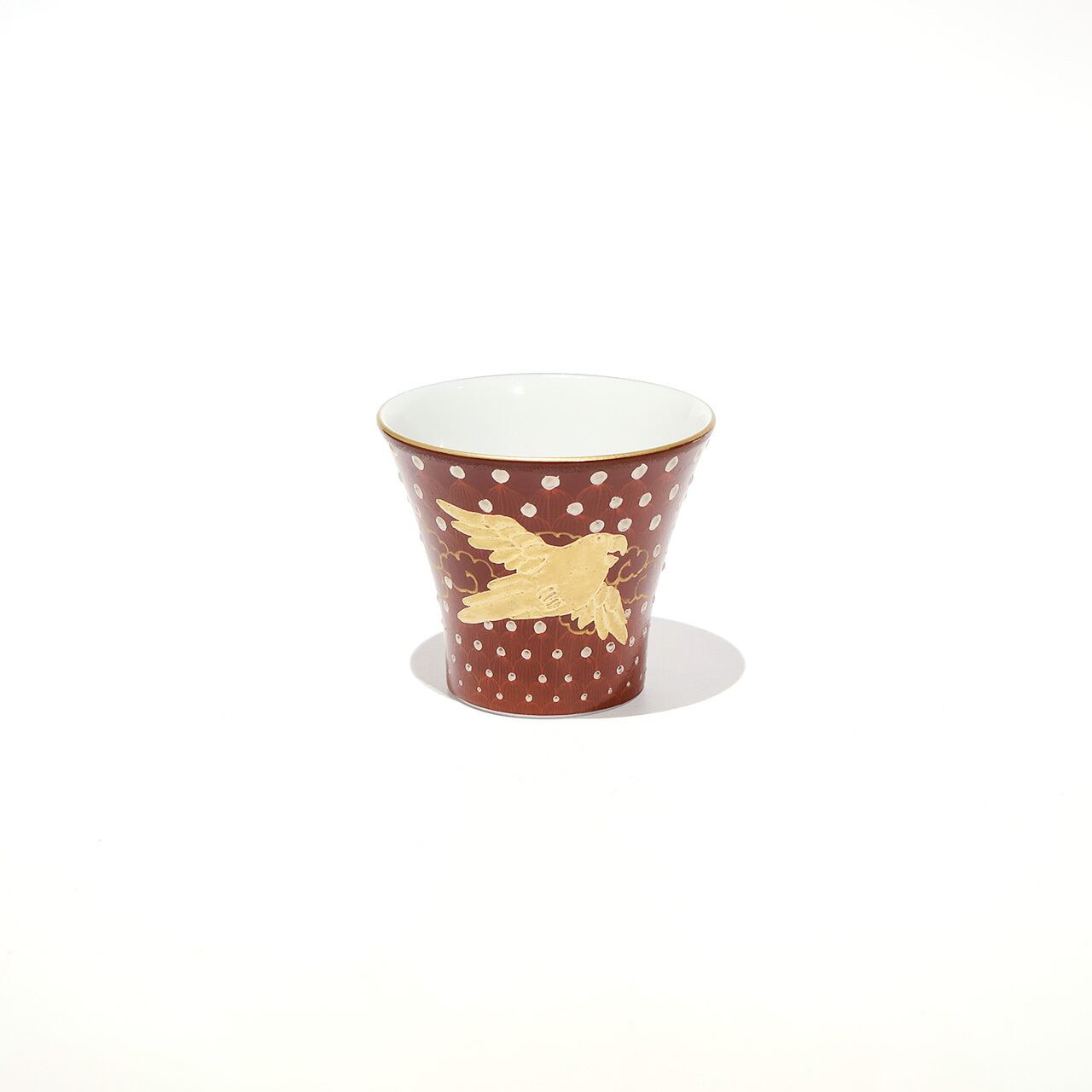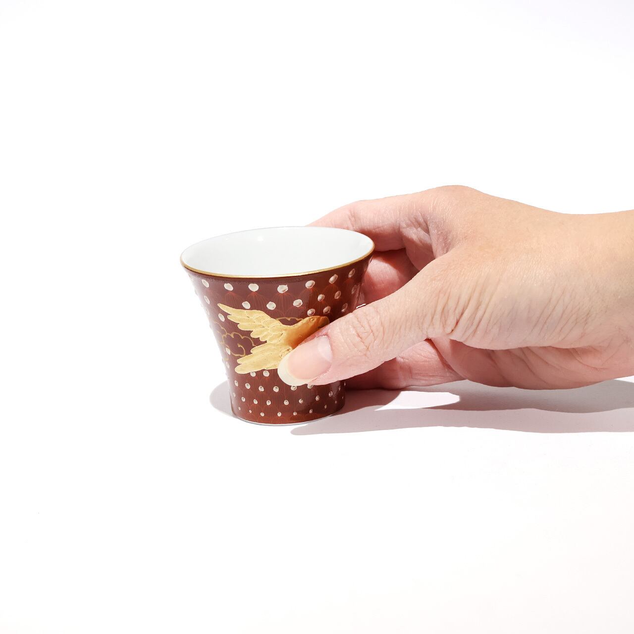 神の使いの鳥が天上世界を悠々と舞っているような神々しいぐい呑み。