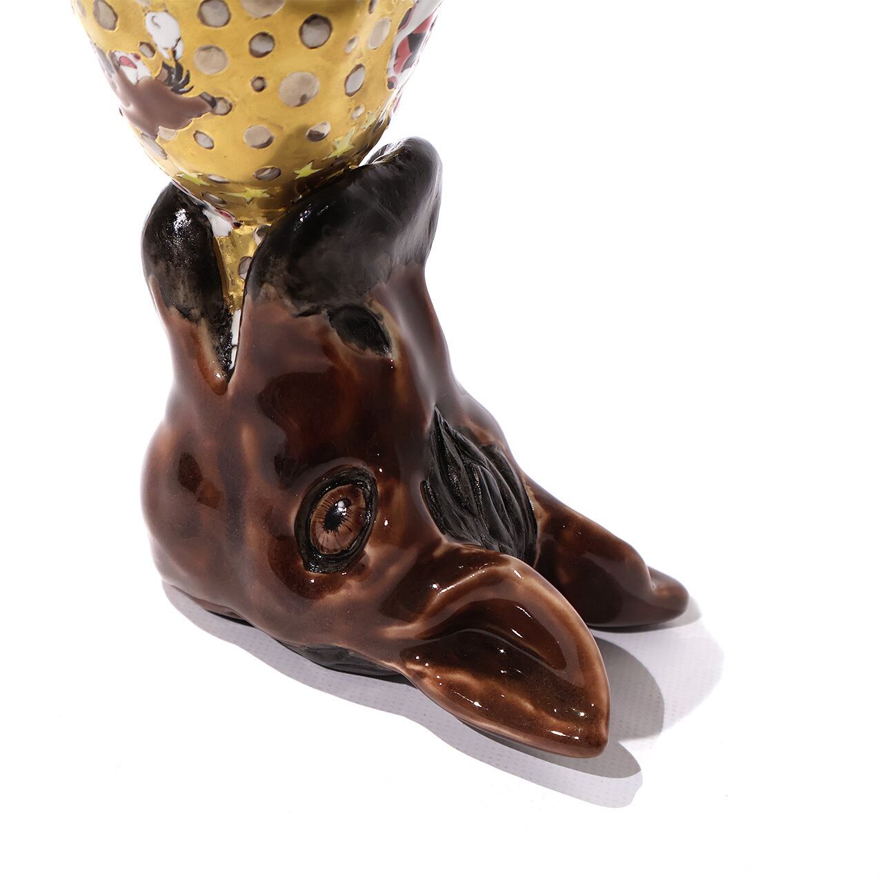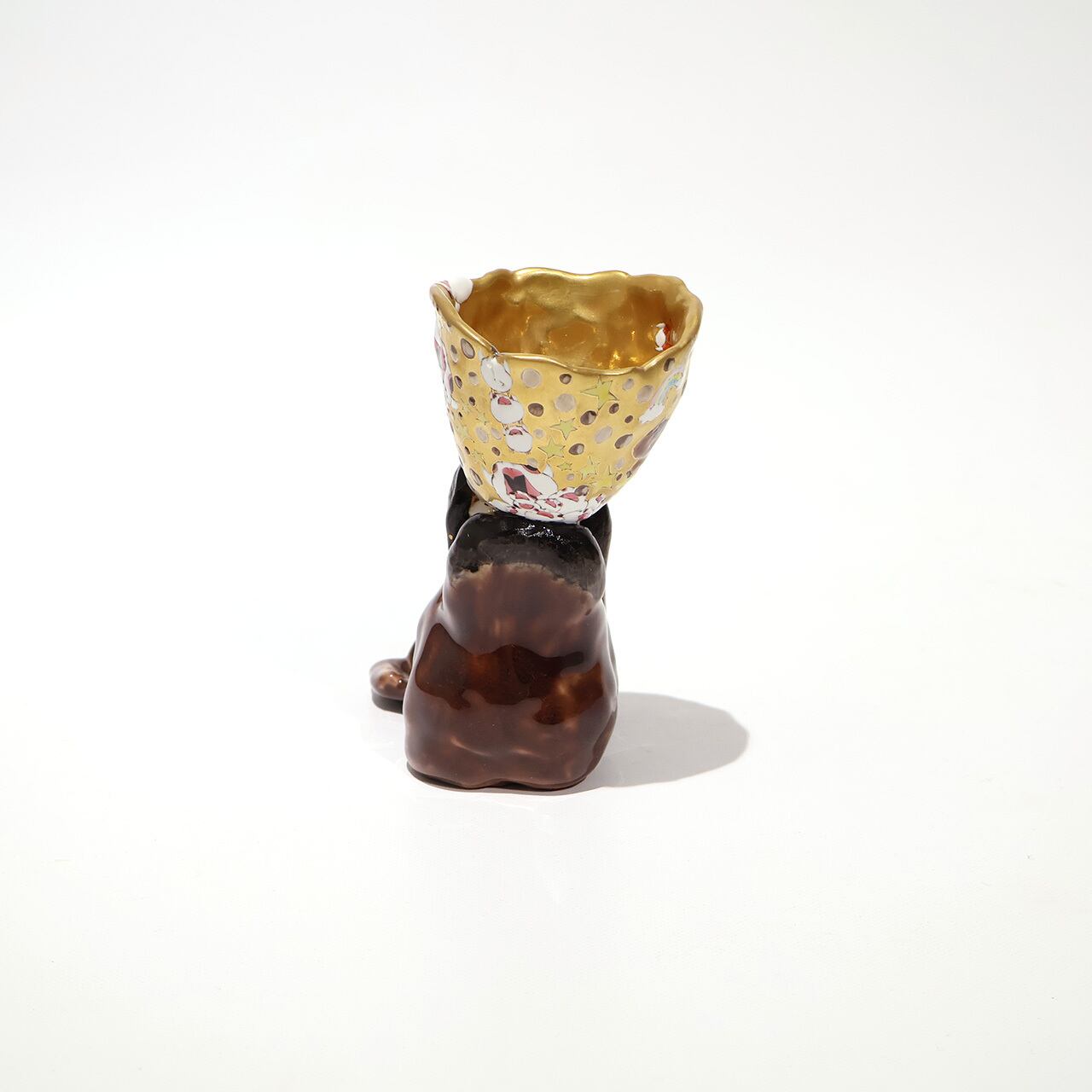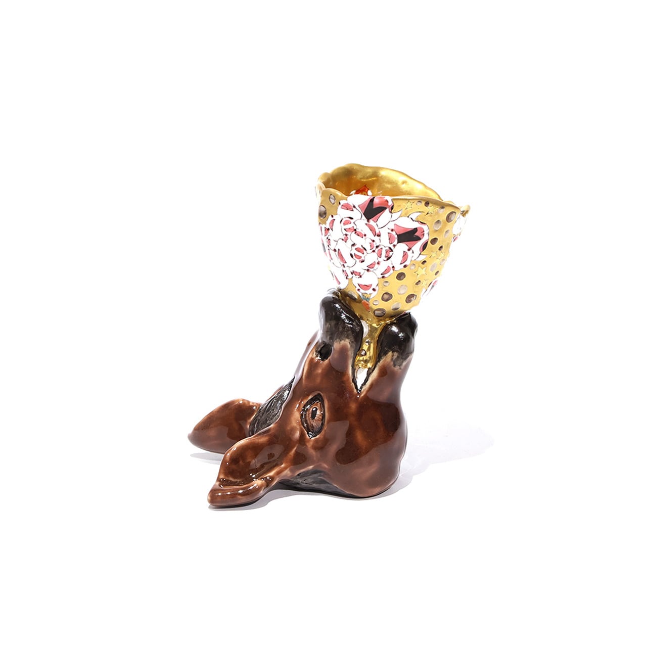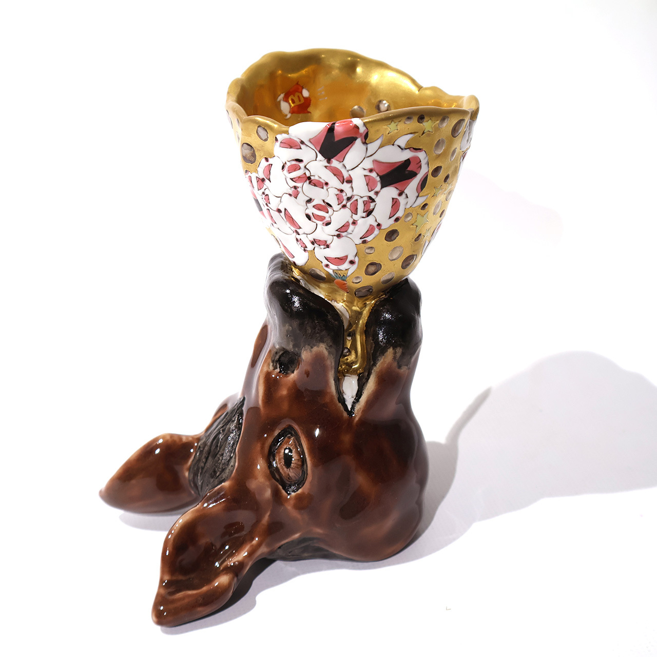胎から自身で制作された馬上杯。午年にちなみ馬の上にある盃=馬上盃のダジャレが効いた作家の遊び心溢れる作品です。