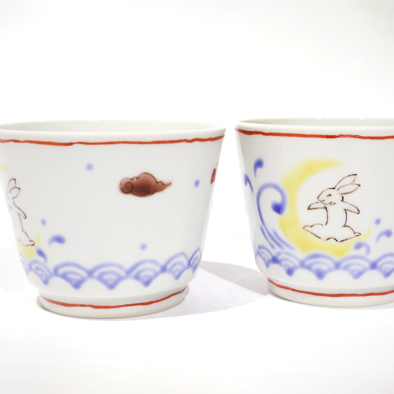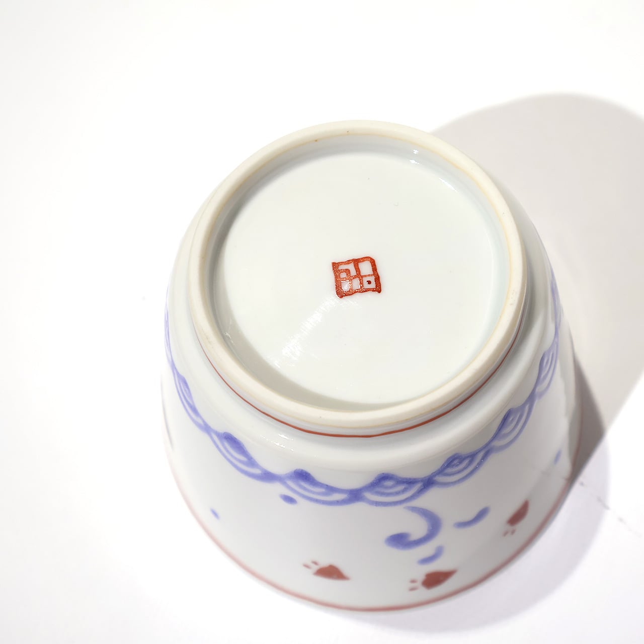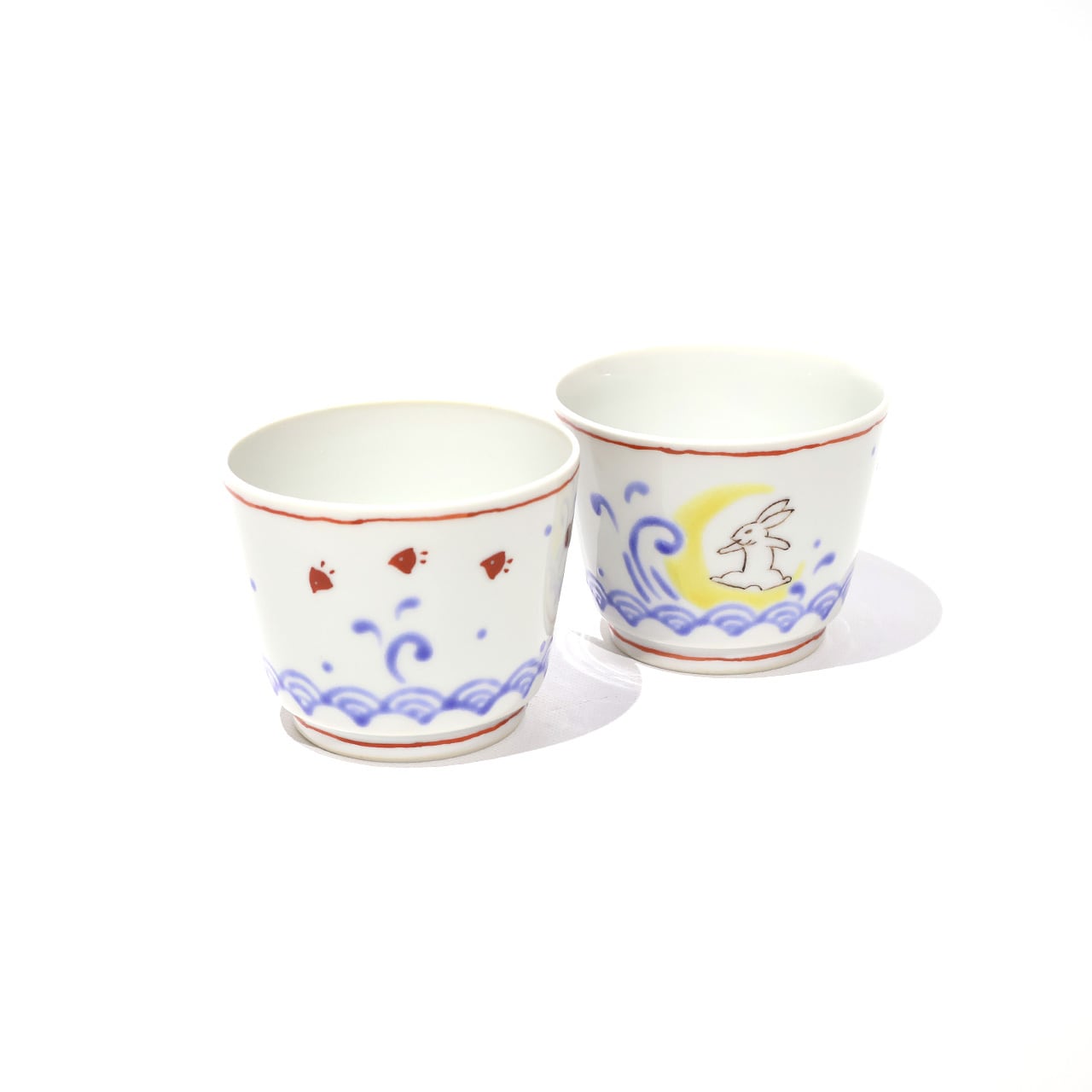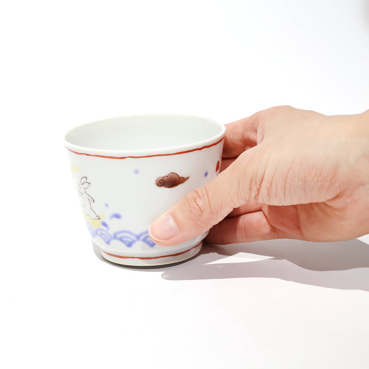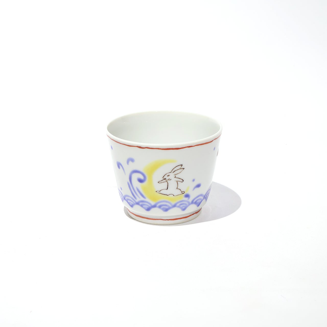 どこかユーモラスで愛らしい「波乗り兎」柄の蕎麦猪口です。