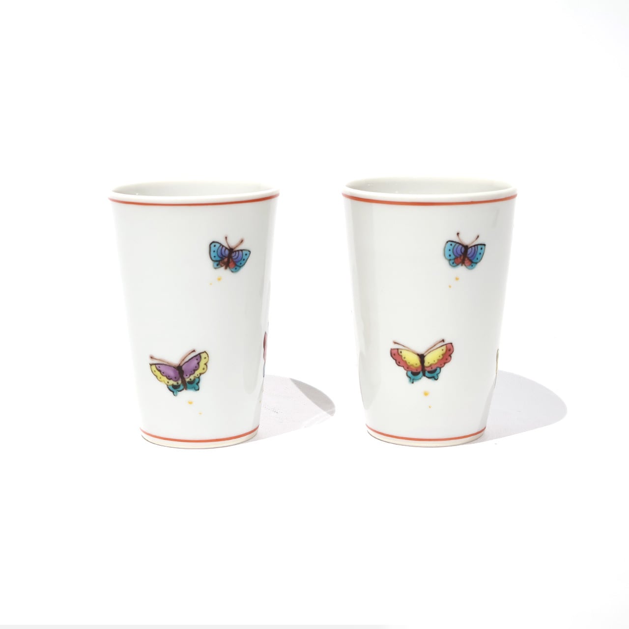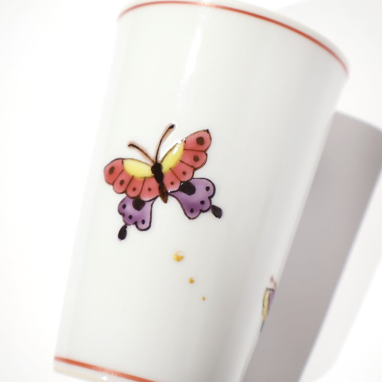 お茶やお酒の時間が楽しくなる、優雅に蝶が舞う細身のフリーカップです。