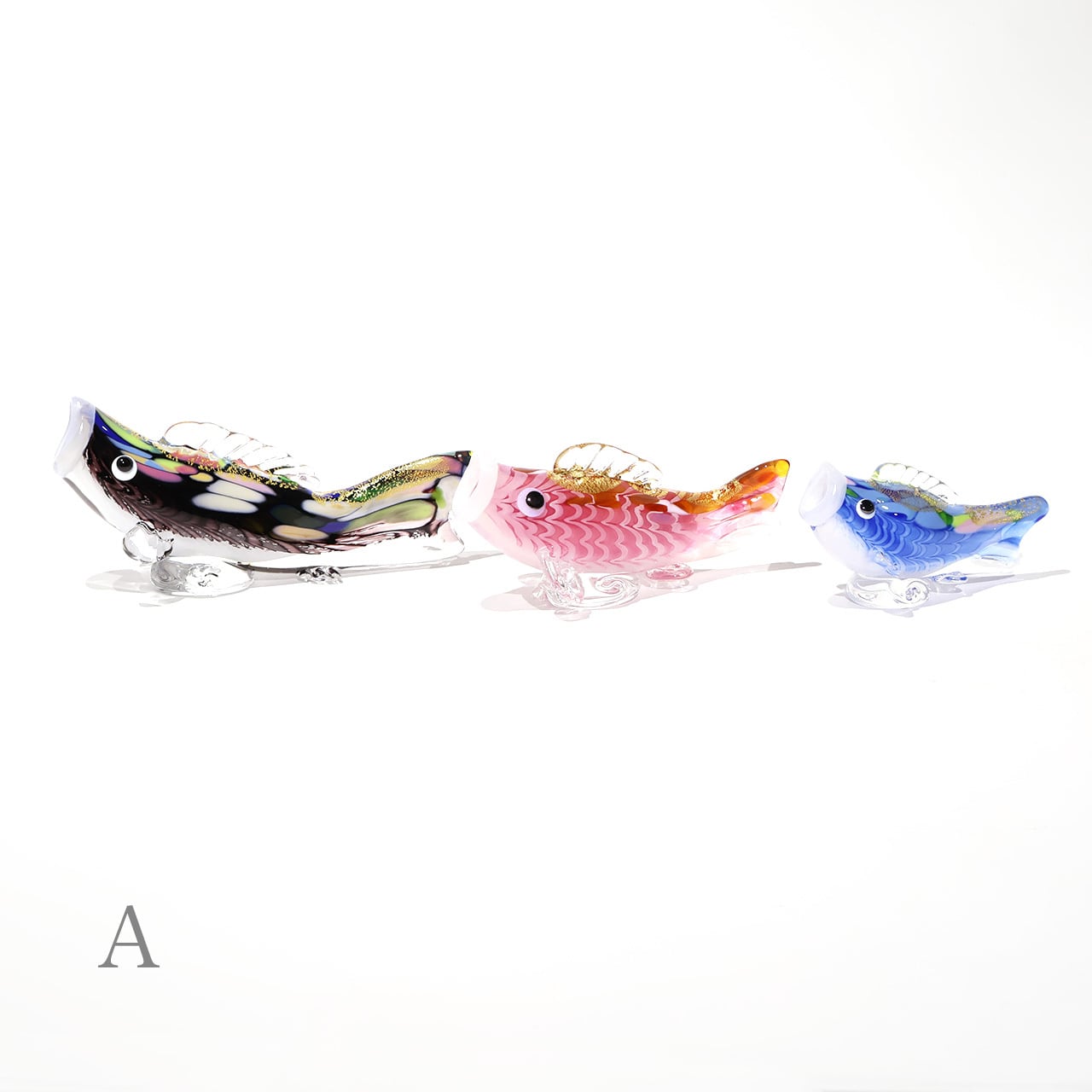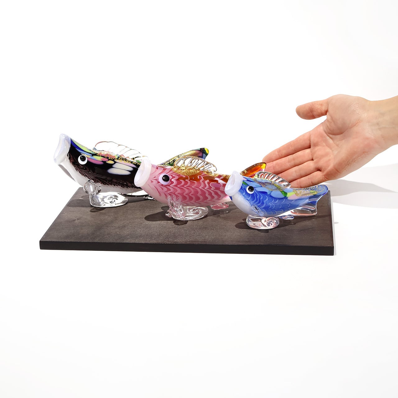 ガラスならではの生き生きと泳ぐ姿が美しいこいのぼりです。