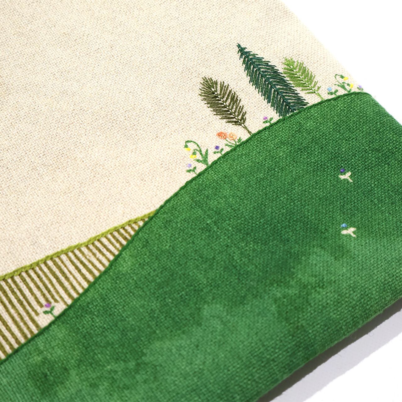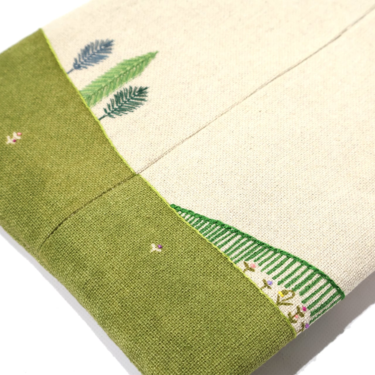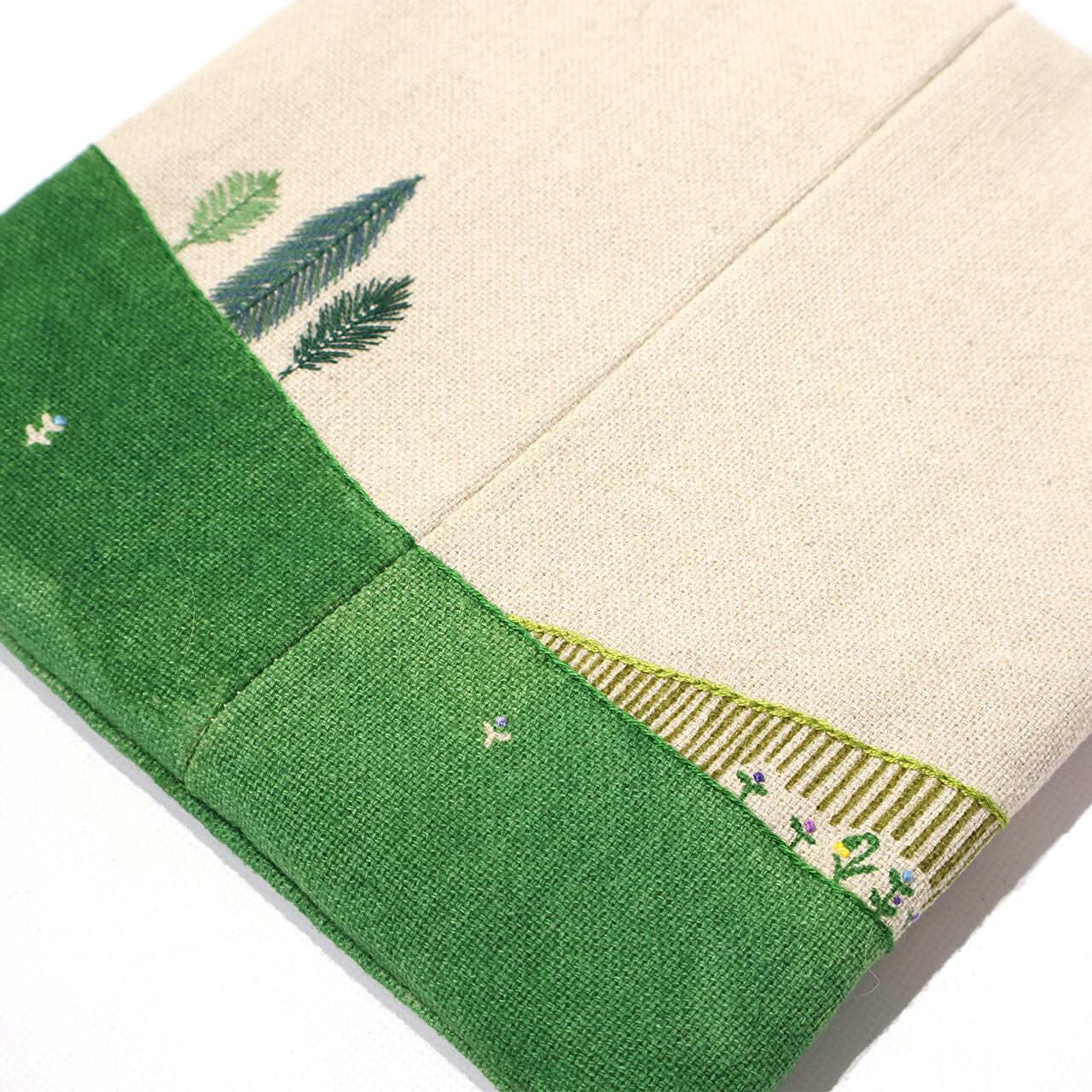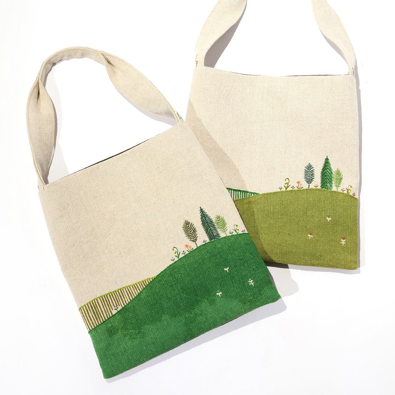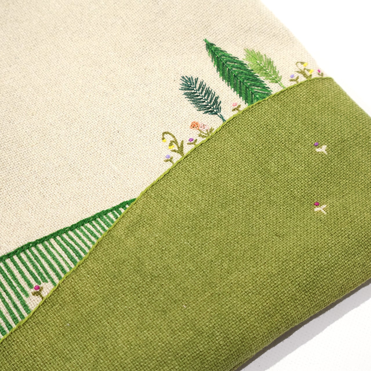 型染めや手捺染で染めた布地に、一針一針丁寧に施された刺繍。繊細な手仕事によって生み出された自然を写した作品に安らぎが宿ります。