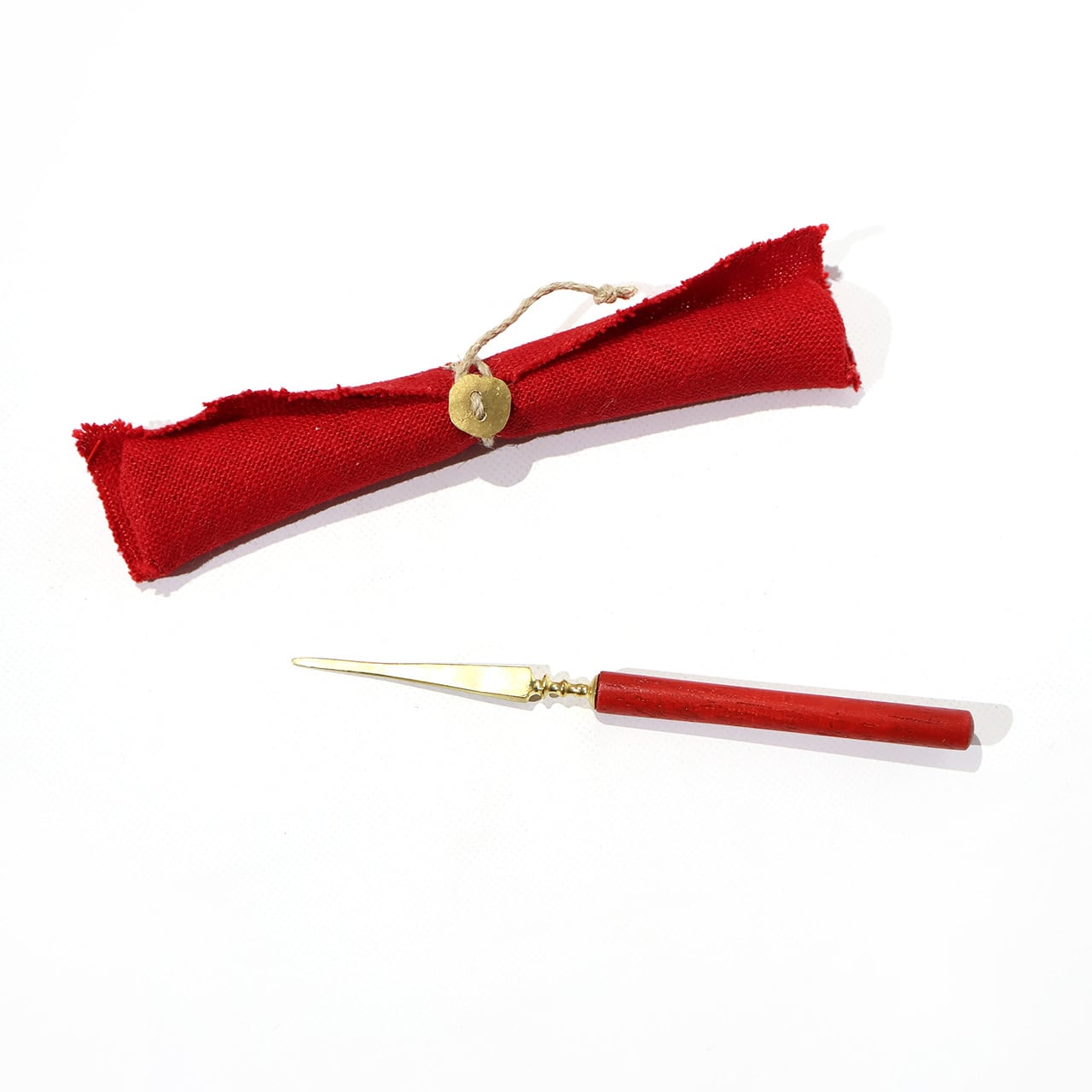 洋のイメージのナチュラルな菓子切り。ひとつひとつ手作りの赤い麻の収納袋がついていますのでMy菓子切として持ち歩くのにもおしゃれで便利です。