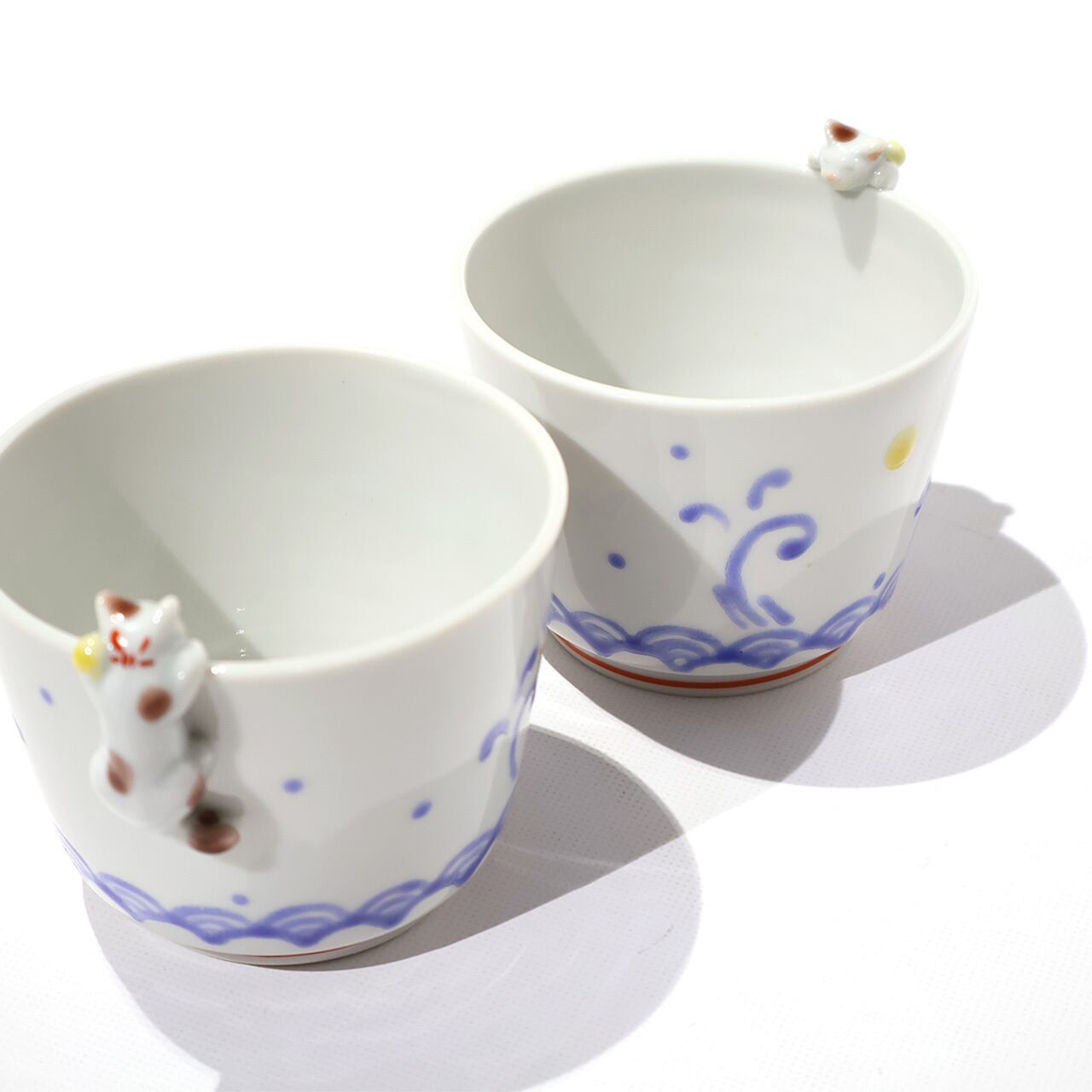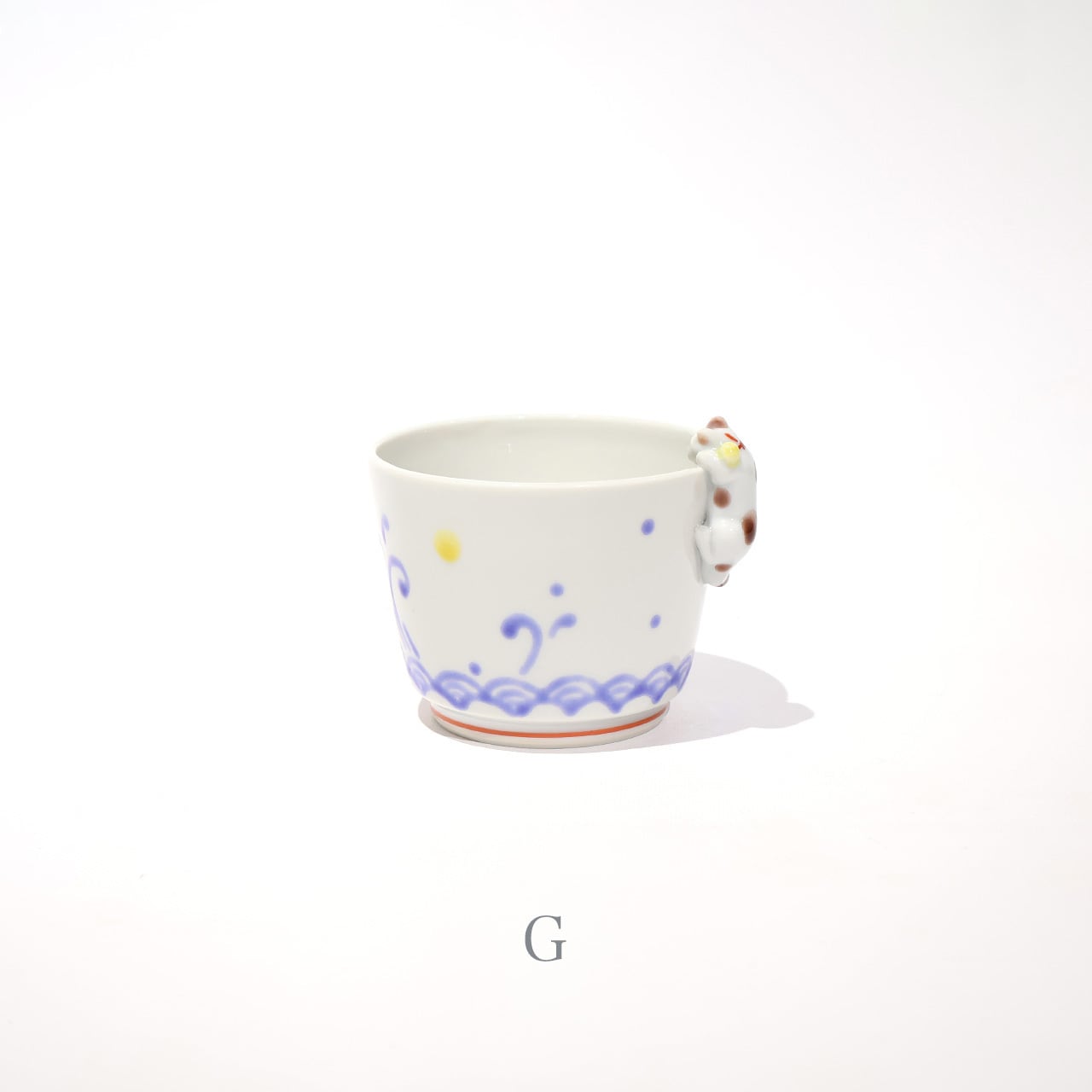 内底をのぞき込むような猫が愛おしい蕎麦猪口です。