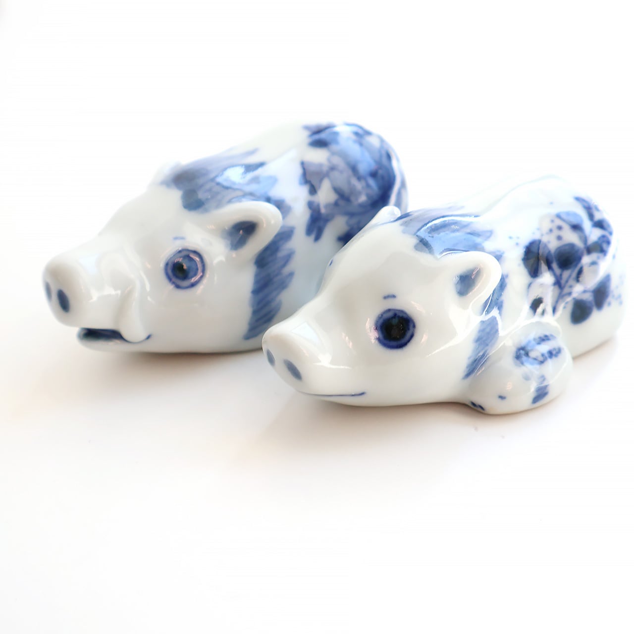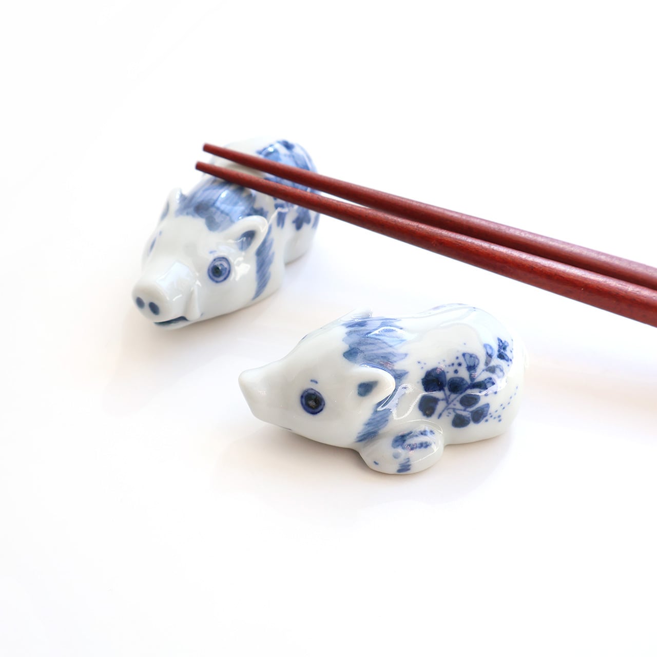 雄亥には牡丹、雌亥には南天をあしらった亥の箸置きです。傍にウリ坊がくっついているのも可愛らしいです。