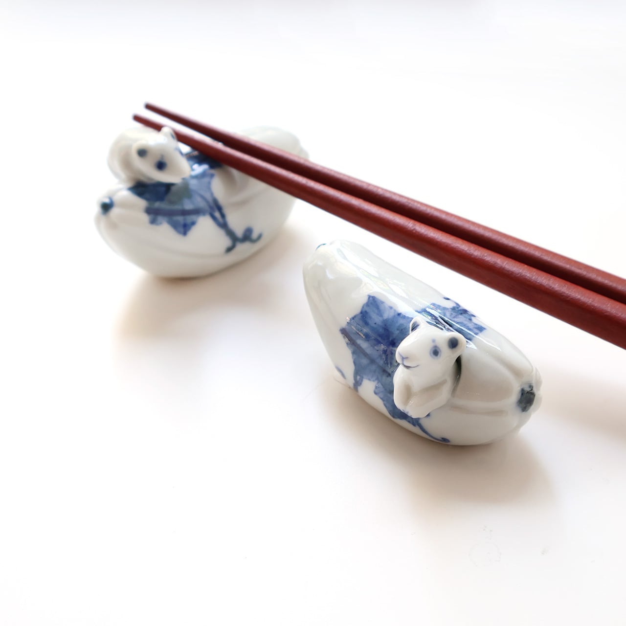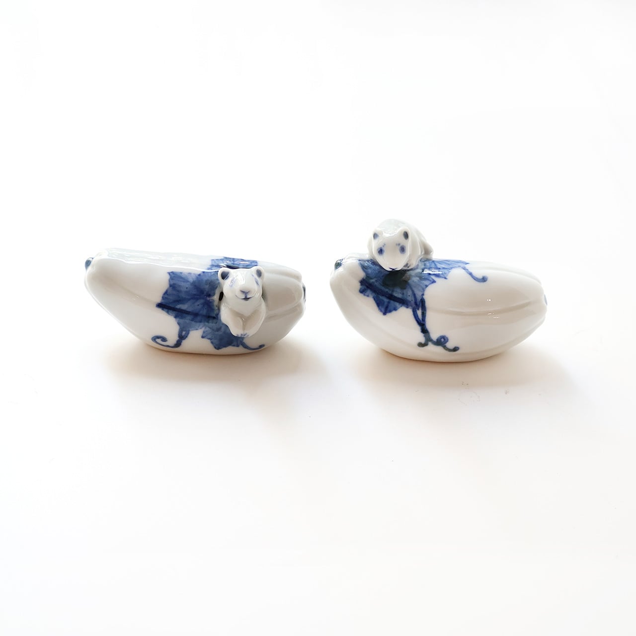瓜と戯れる様子がとても愛らしい子の箸置きです。