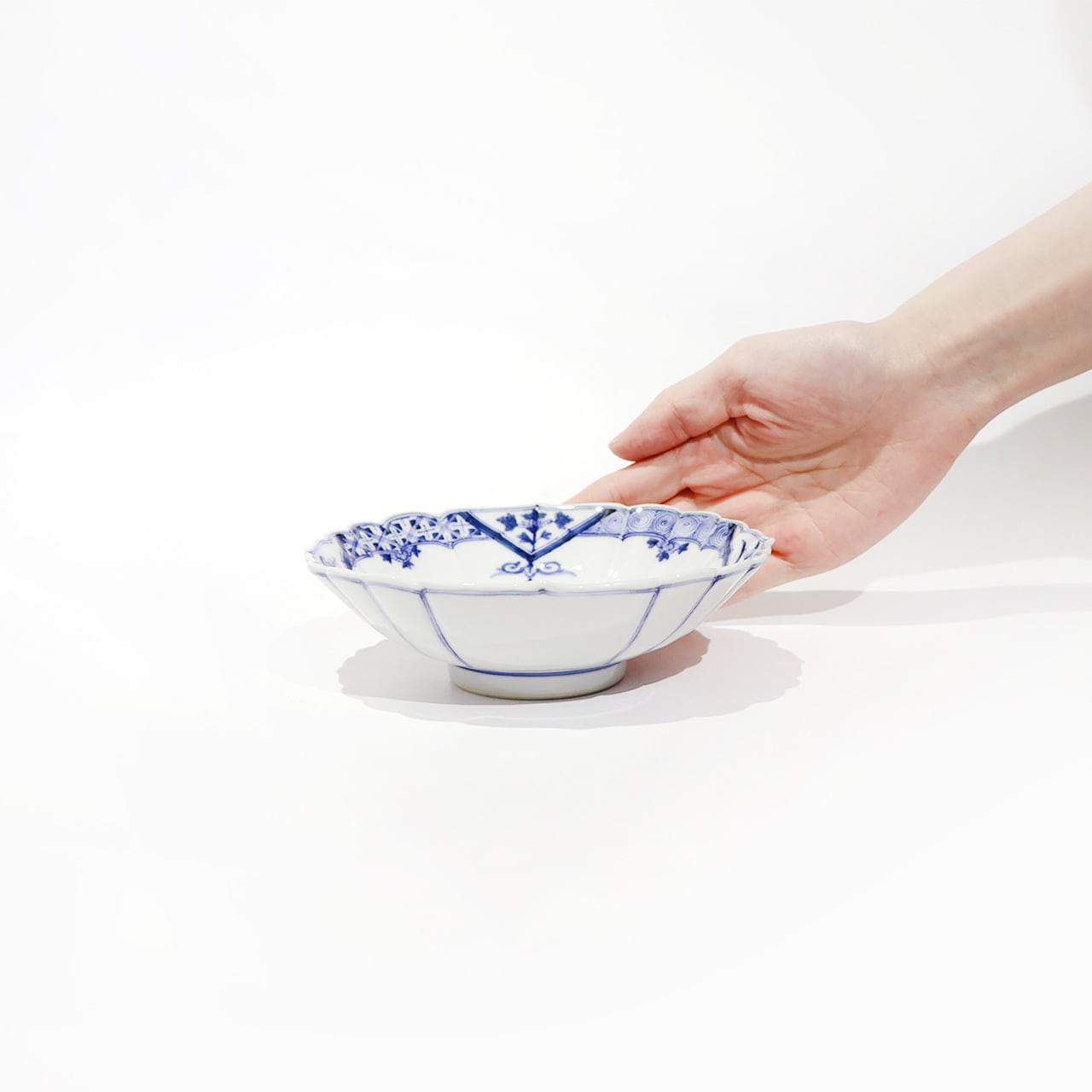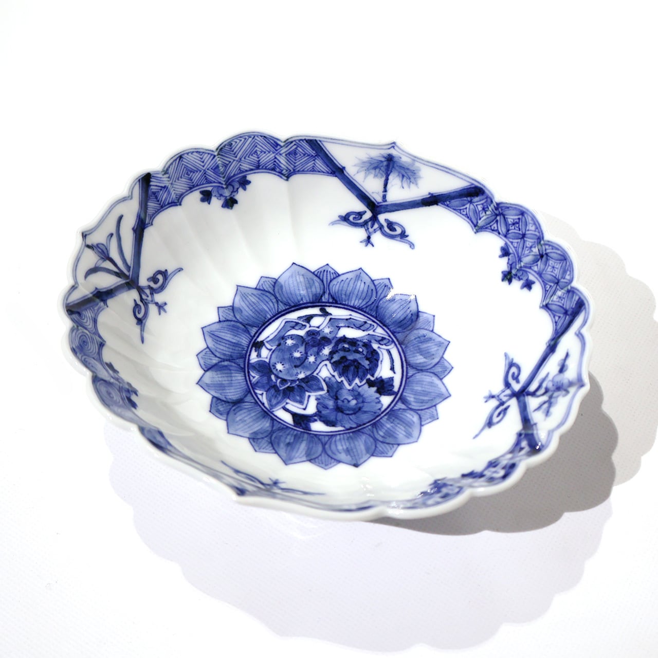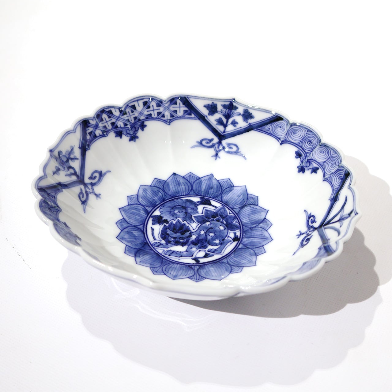 アヤベシオリ 楕円中鉢「染付 牡丹獅子文」