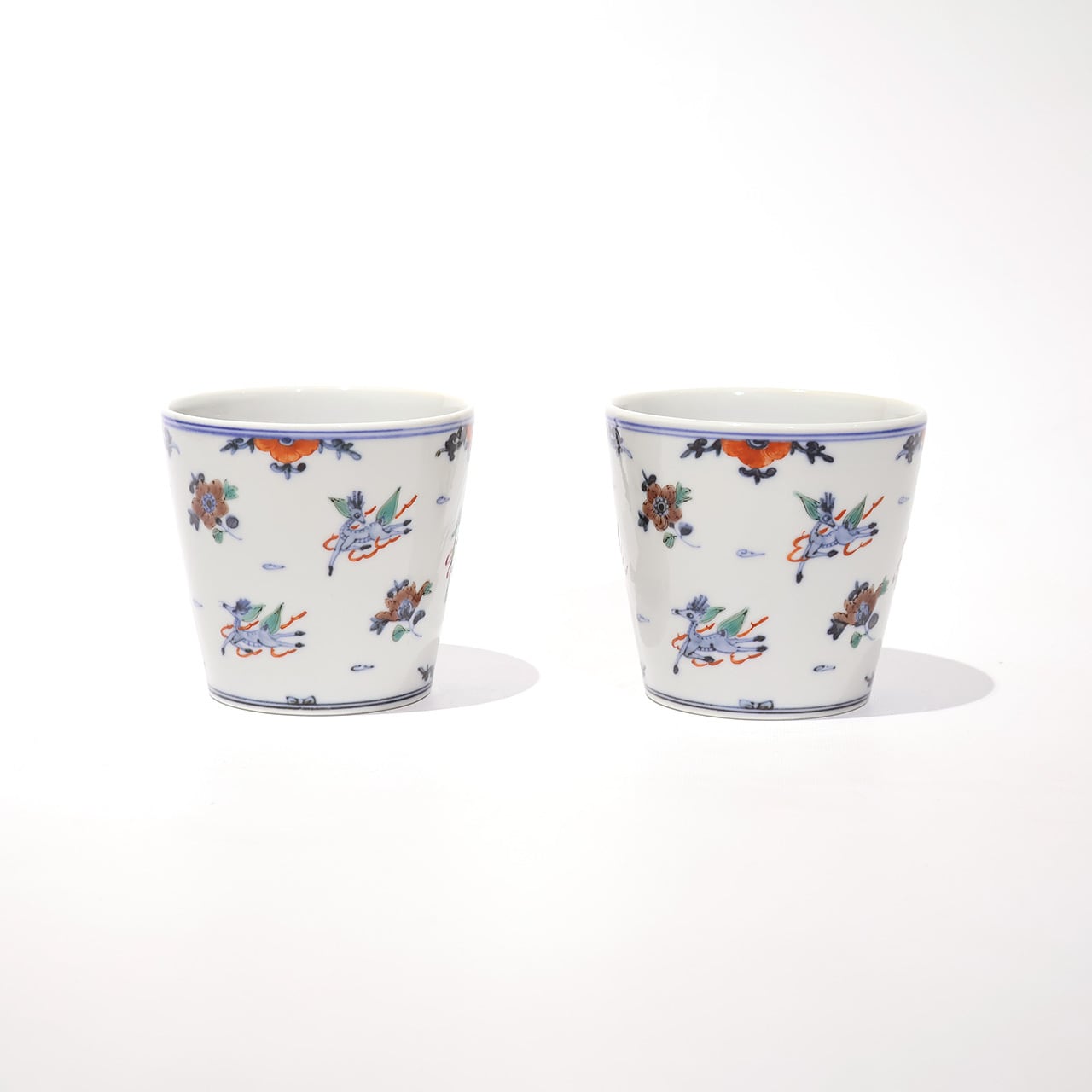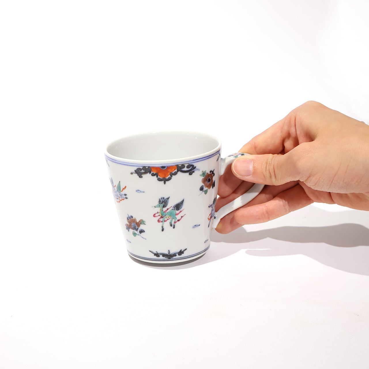 麒麟たちが楽しそうに戯れている様が可愛らしい絵付けです。楽しいお茶のひと時のお供にいかがでしょうか。
