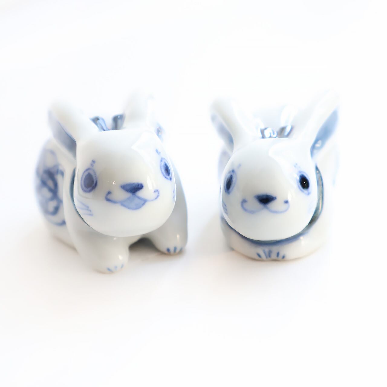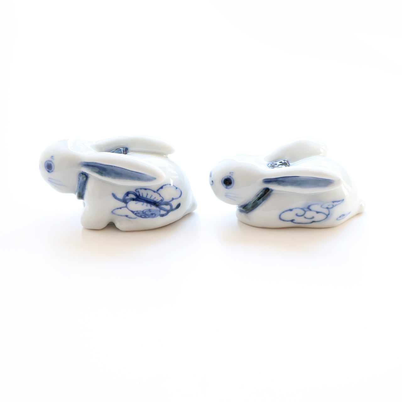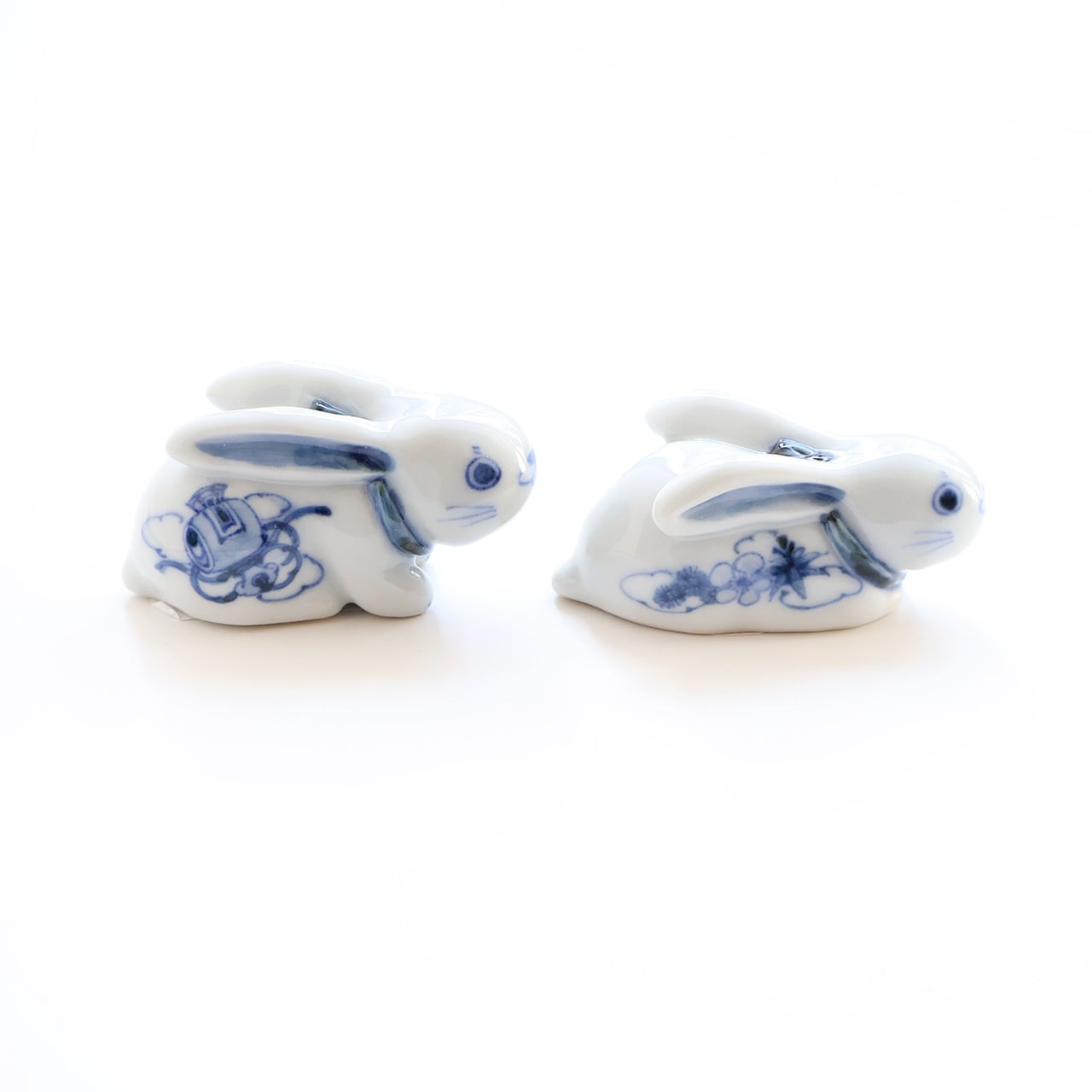 小さなうさぎは月と松竹梅、大きなうさぎは宝尽くしと縁起の良い柄です。