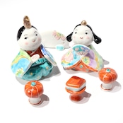 福々しいお顔が幸福を呼び込むお福ちゃんの雛人形。春らしい色味の置物を纏った2人の姿がとても愛らしいです。