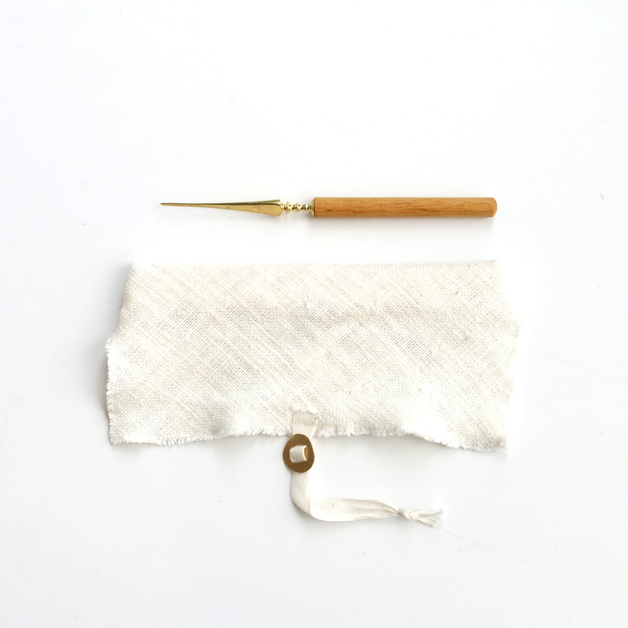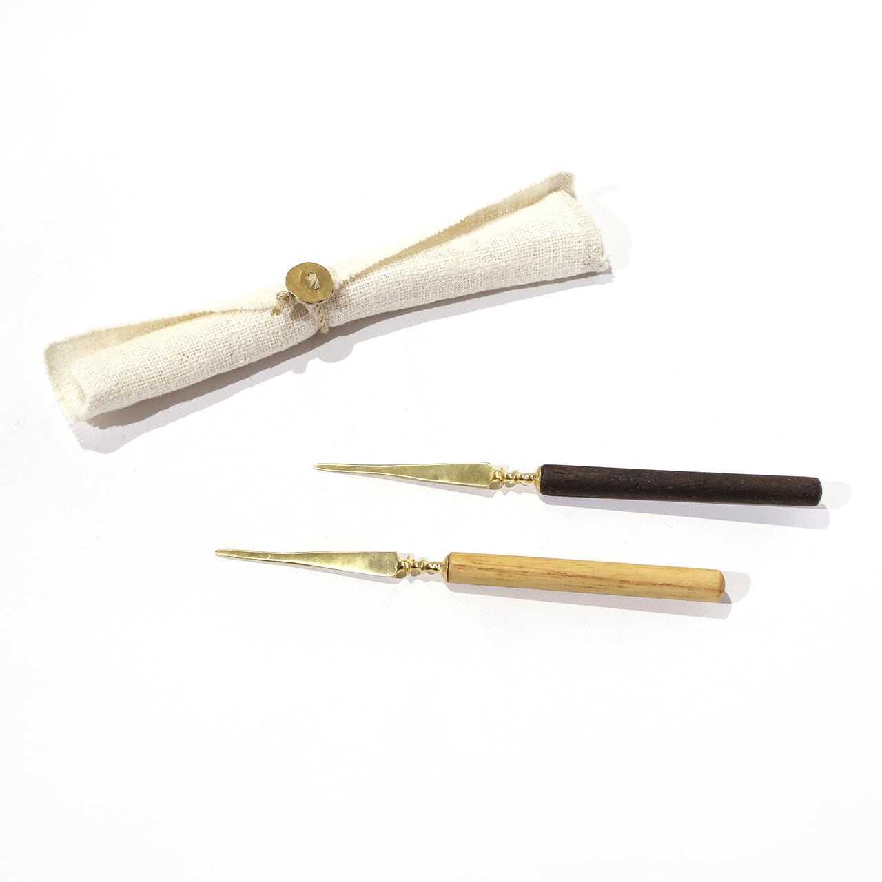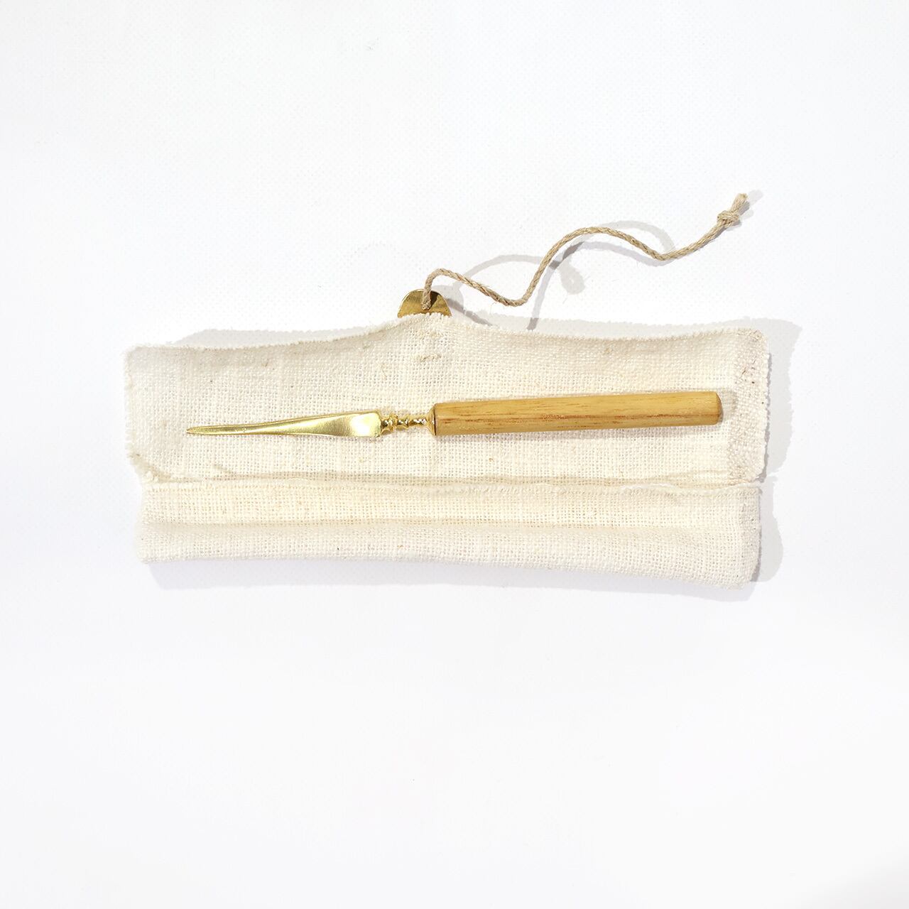 洋のイメージもあるナチュラルな菓子切り。ひとつひとつ手作りの麻の収納袋がついていますのでMy菓子切りとして持ち歩くのにも便利です。