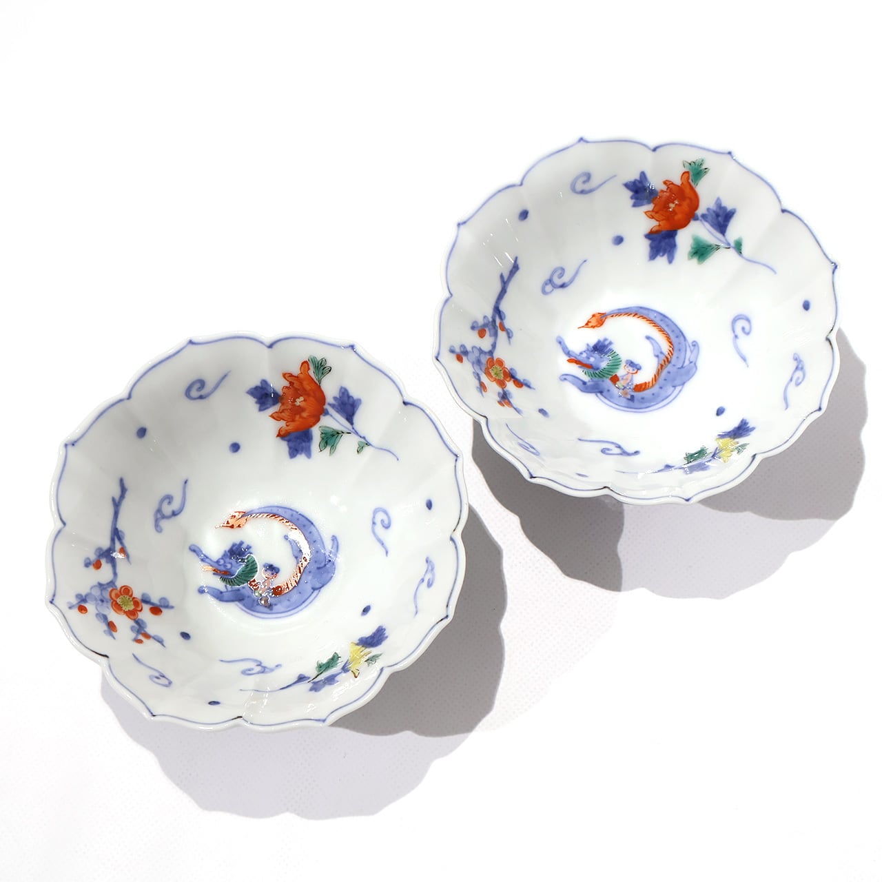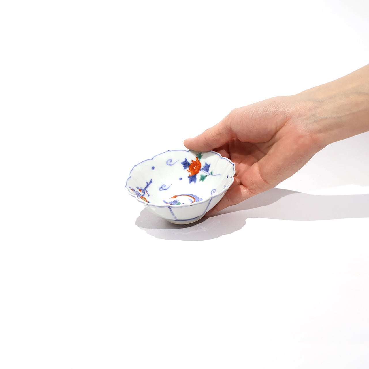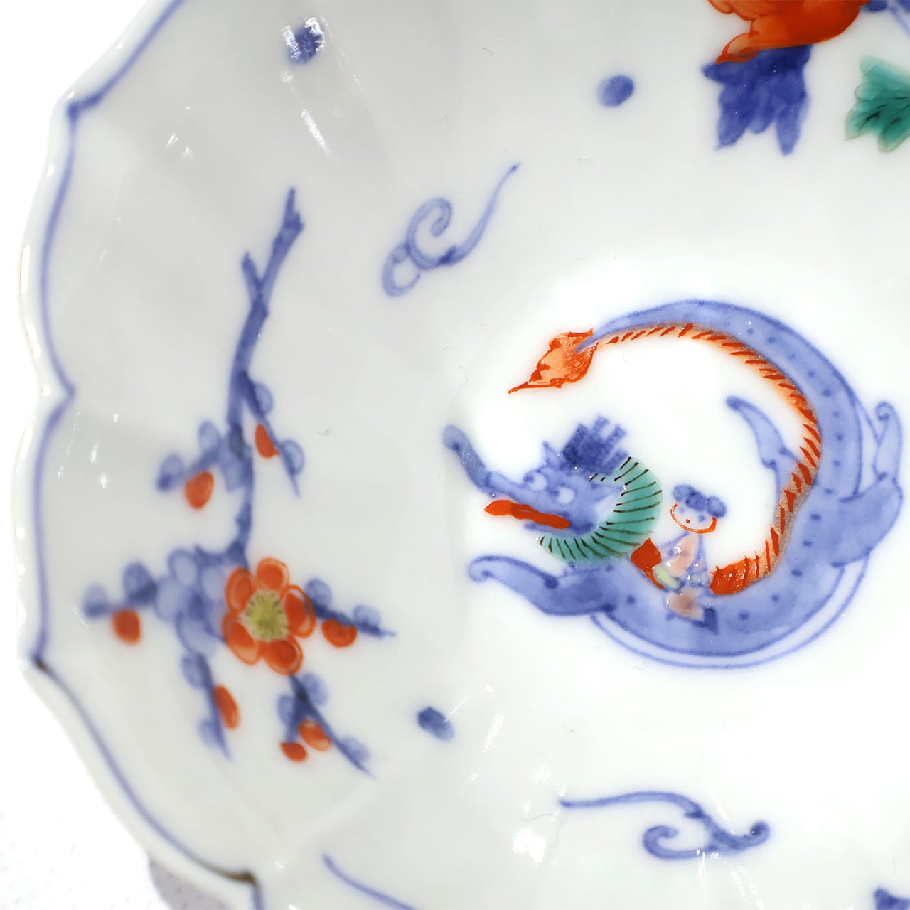 アヤベシオリ 輪花小鉢「色絵 唐子龍文」