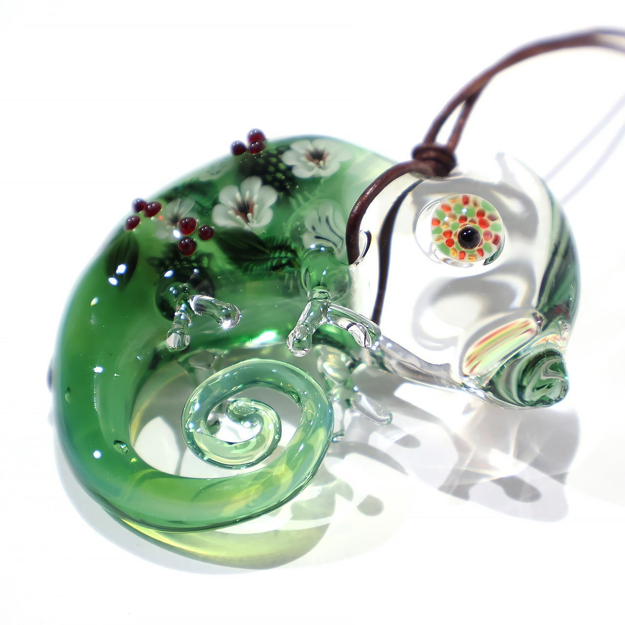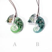 意外とファンの多い爬虫類の中でもカメレオンはダントツな人気。どこか愛らしくて魅力的な生き物をソフトにカワイらしく表現し、ペンダントにしました。