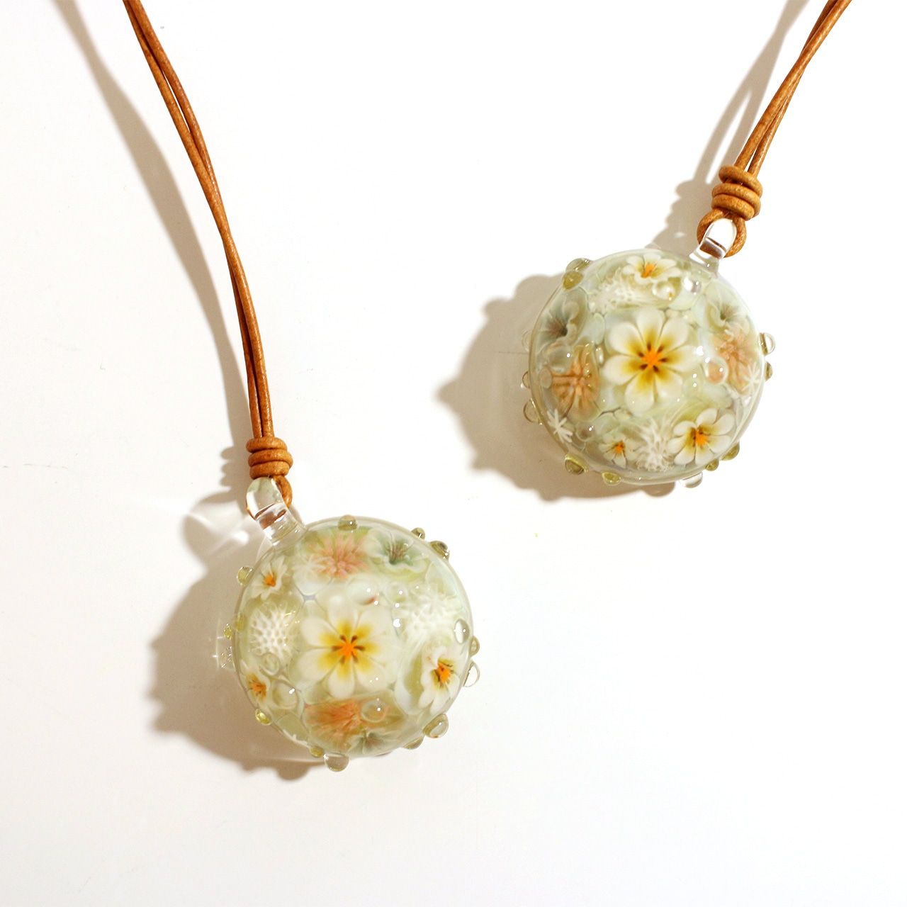 全てバーナーワークでの手作業で制作されていますので同じ形、色、模様の作品を作ることはできません。出会いのものとしてお楽しみください。